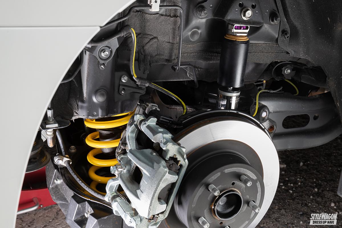 V3は正真正銘、ドイツ本国からエンジニアが来日し、アルヴェルに相応しいラグジュアリーな乗り味を追求したモデル。フロントは約40㎜、リアは約35㎜と車格に相応しいジェントルなローダウンも実現できるため、乗り味もスタイルも両立できる。