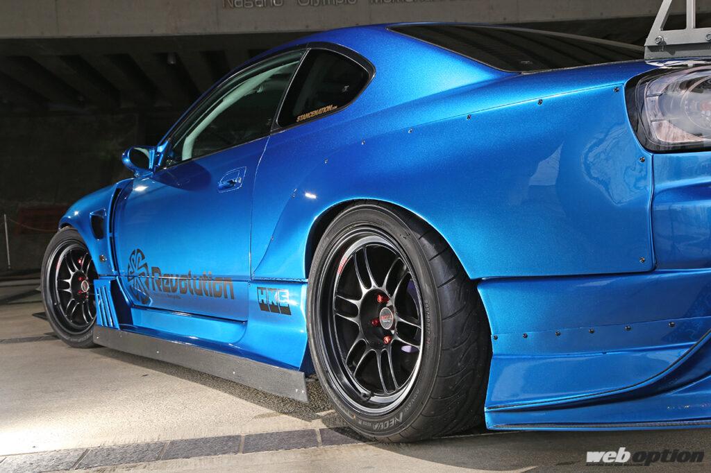 フルエアロ+大径アルミホイールという仕様の愛車に満足していたオーナーだったが、ある日エンジンの隅々まで手の入ったS15シルビア乗りと知り合い、その圧倒的な速さに感動。以降、学生の身でありながらもパワーチューニングに没頭し、“ガレージマック”の手を借りながら、気がつけばここまでの仕様に辿り着いていたそうだ。
