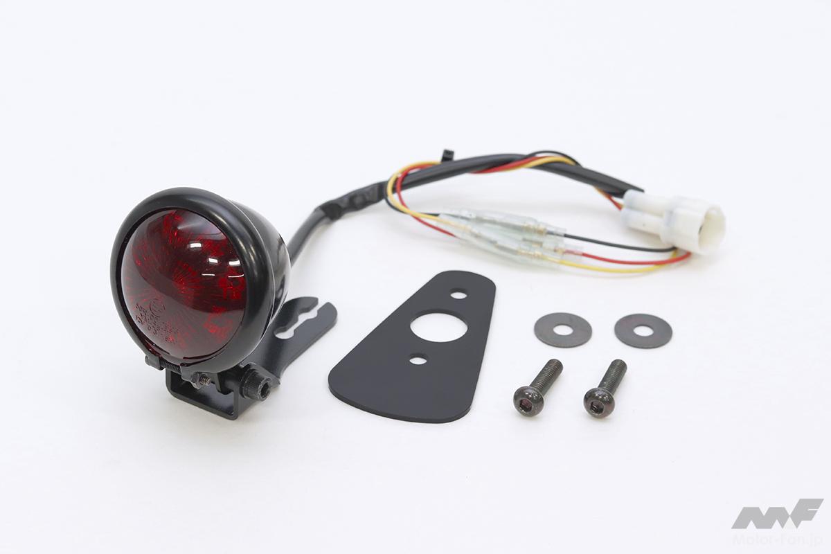 ネオクラシック系モデルのフェンダー周りに最適な「LED丸形スモールテールランプキット」。eマーク取得品で車検対応。レンズはレッドとスモークの2種類あり。汎用タイプ(5720円/税込)もあり。