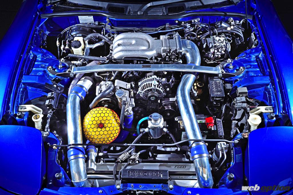 名門フジタエンジニアリングが手掛けた心臓部は、同社のサイドポート“スペック5”にTO4Sタービンを組み合わせた450ps仕様。峠最速マシン“魔王号”のパワーユニットをアレンジした、オールラウンド型のハイスペックユニットとなる。