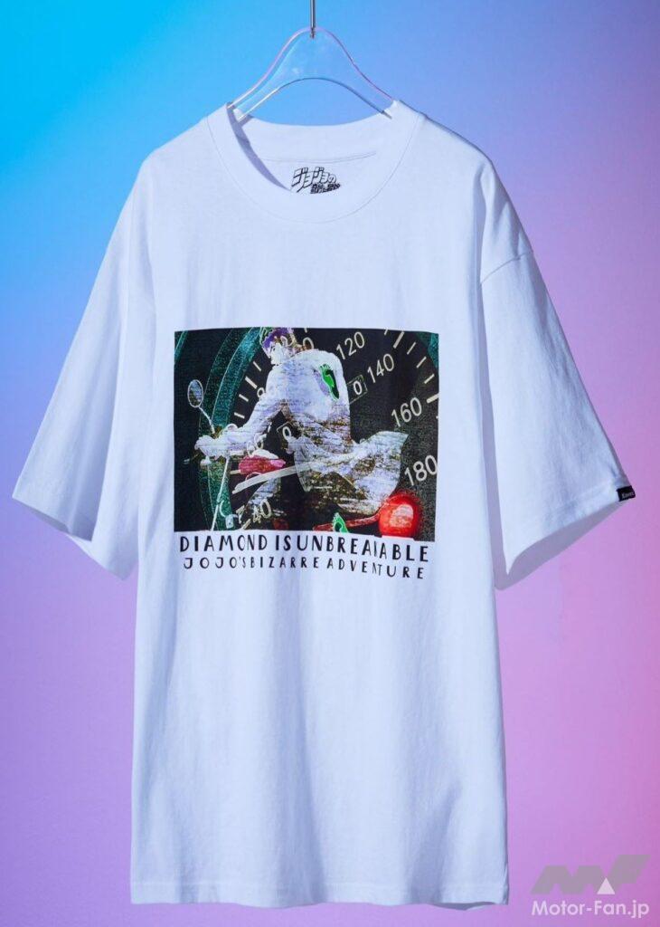 本商品は、アニメ『ジョジョの奇妙な冒険・ダイヤモンドは砕けない』とKawasakiがコラボレーションしたオリジナルTシャツだ。