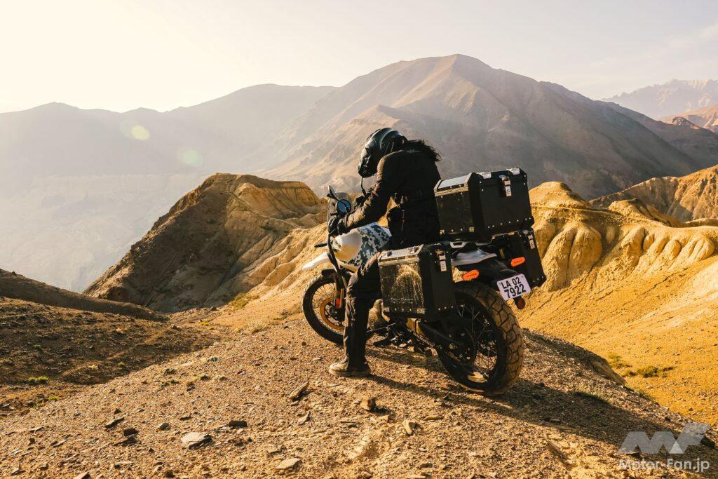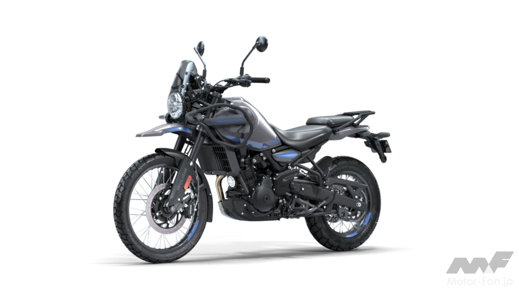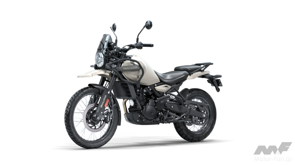 New HIMALAYAN 主要諸元 全長/全幅/全高:2,245 / 852 / 1,316mm シート高:825 /845mm 乗車定員:2人 排気量:452cc エンジン:水冷4ストローク単気筒DOHC4バルブ 車両重量:196kg 最大トルク:29.44kW(40.02ps)/8000rpm 最大出力:40Nm(4.08kgm)/5500rpm トランスミッション:6速リターン式 フューエルタンク:17L フロントブレーキ:φ320mmディスク ABS付 リヤブレーキ:φ270mmディスク ABS付 フロントタイヤ:90/90-21 リアタイヤ:140/80R17 製造国:インド