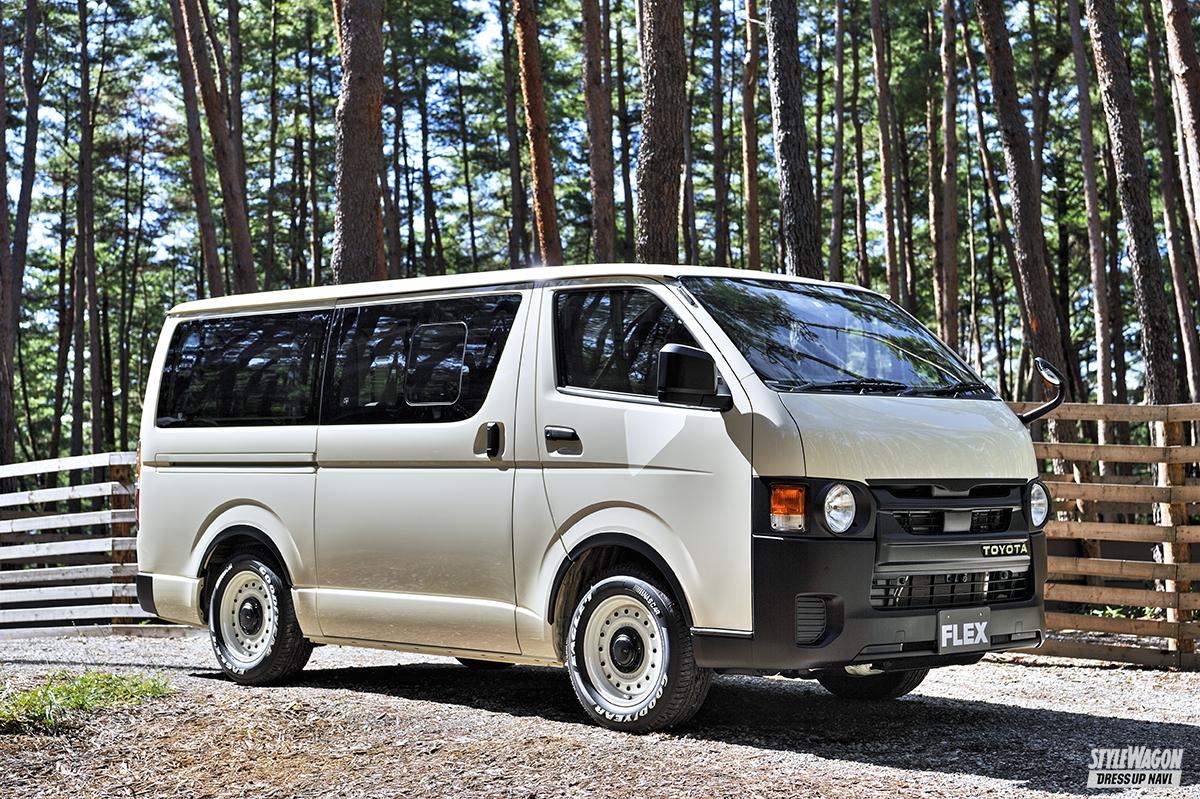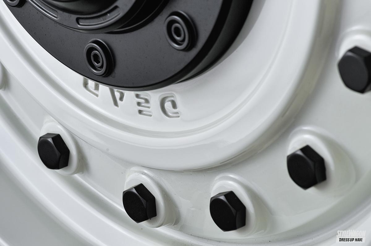 力強いディッシュフェイスに、複数のピアスボルトを大胆に打ち込んだパワフルかつミリタリーな装いで高い人気を誇るディーン・コロラド。パワー系やアウトドア系ハイエースの強い味方として幅広い支持を受ける傑作だが、実はそんなコロラドにはフレックス限定カラーモデルが存在している。それがこの色、マーガレットホワイト。無骨でラギッドなコロラドが、オシャレなカントリー系へと大変身する注目のアースカラーだ。
