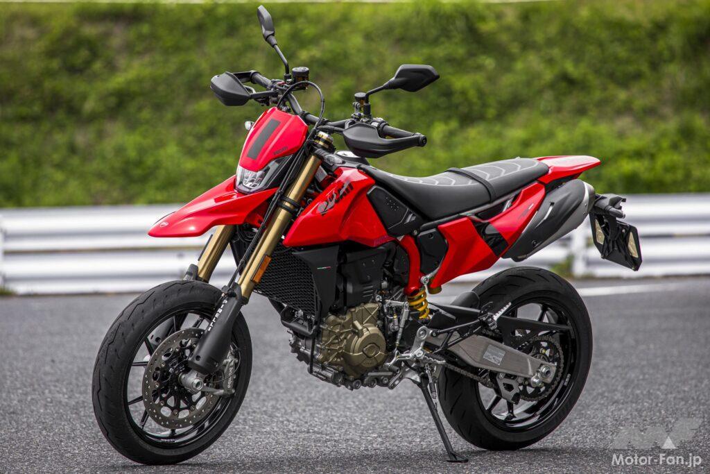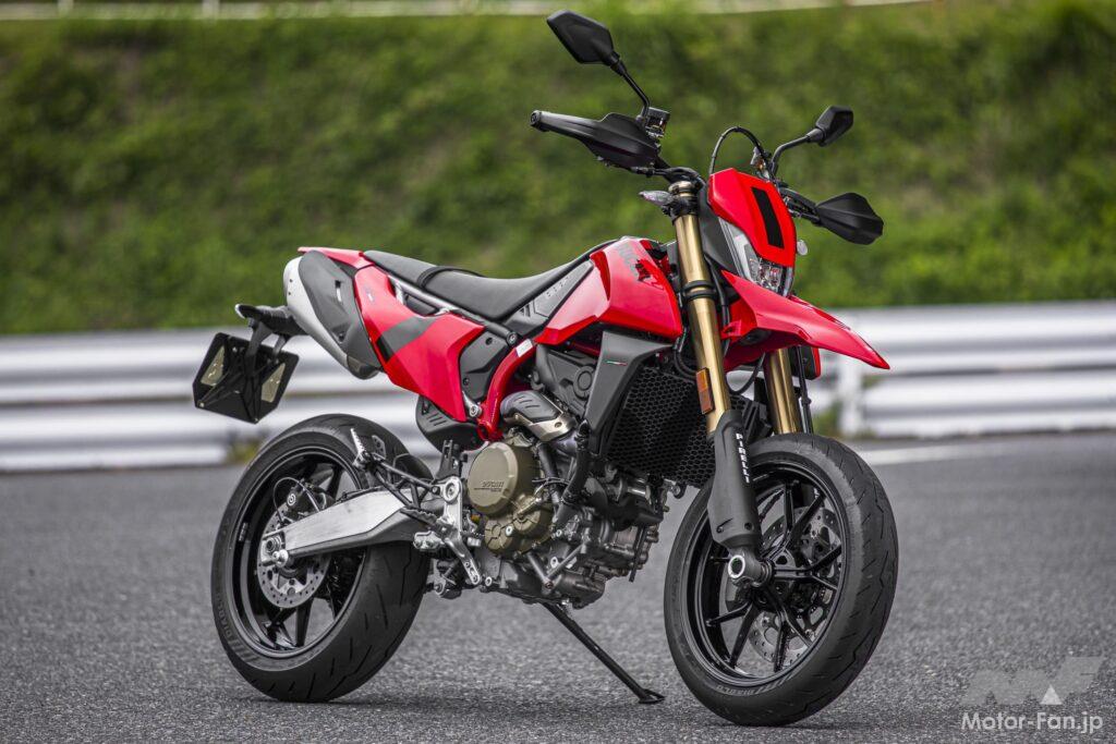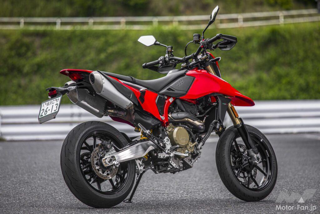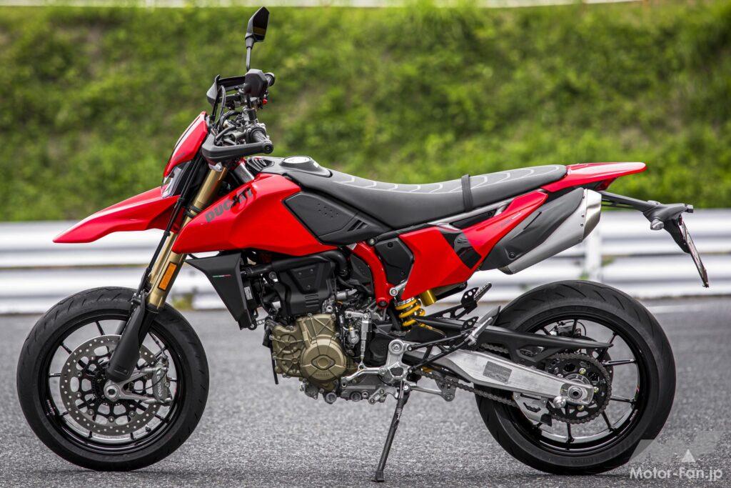 この夏、イタリアのドゥカティが日本でも販売するハイパーモタード698モノは、そんなスーパーモトの競技車両のような長脚系のフォルムが特徴的だが、オフロード車から派生したものではなく、純オンロードモデルとして開発されている。よって、サスストロークは長めに確保されてはいるものの、ダート走行やジャンプなどは想定していないという。直接のライバルは、排気量も近しいKTMの690SMC Rあたりだろうか。価格差が3万1000円しかないことからも、おそらく海外の二輪専門媒体では、両モデルを含む対決試乗記が誌面をにぎわせているに違いない。