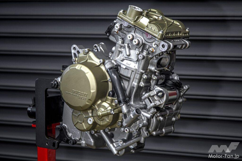 まずはエンジンから。ドゥカティからおよそ30年ぶりに登場した659ccの水冷単気筒は、ボア×ストロークがφ116mm×62.4mmで、このボアスト比(0.538)はMotoGPマシンよりもショートストローク設定なのだ。最高出力は77.5psで、近しい排気量のヤマハ・MT-07(688cc、水冷並列2気筒)が73psを発生することから、このクラスとしては特別にパワフルというわけではない。