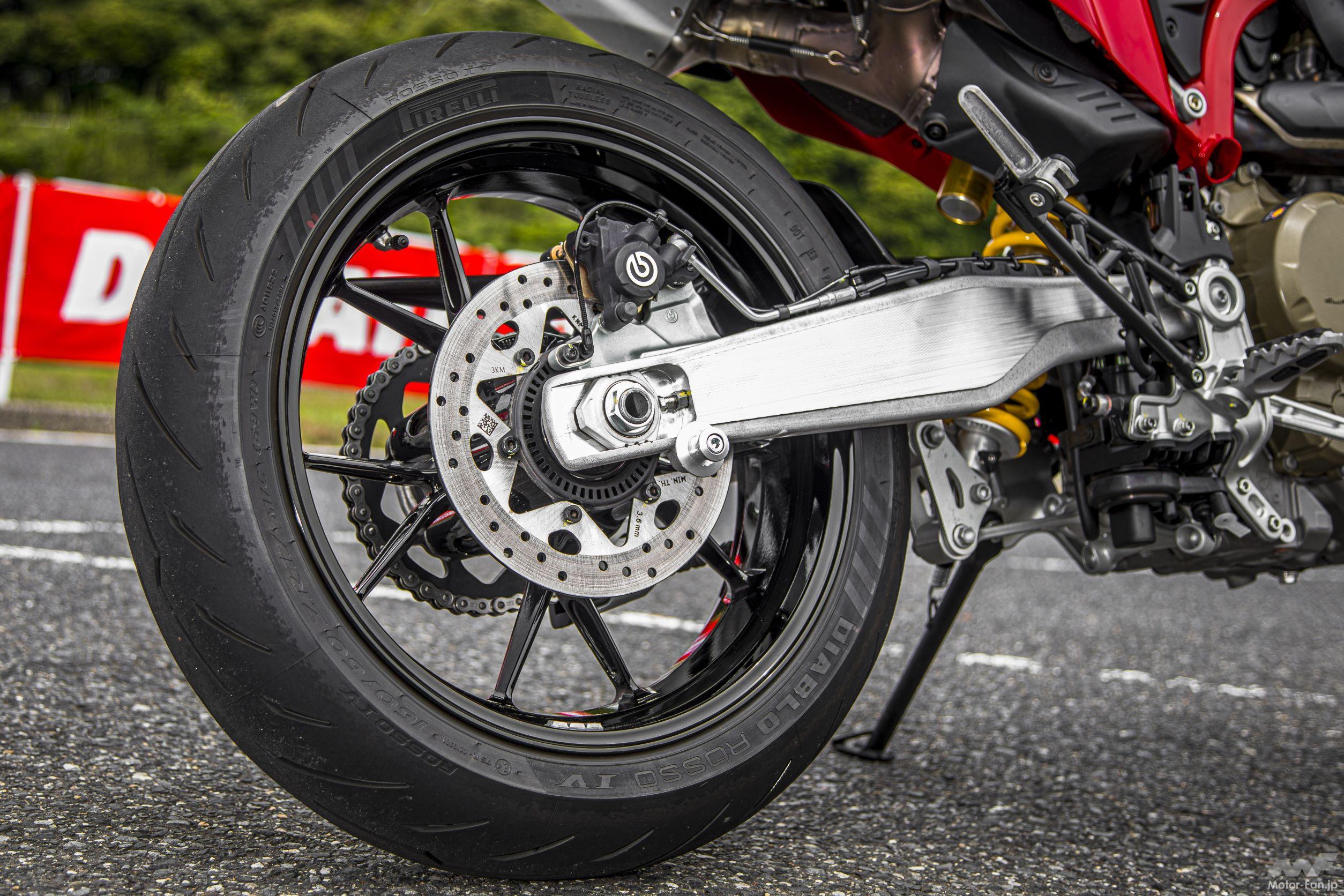 さて、このハイパーモタード698モノにおけるもう一つの目玉は、スライド・バイ・ブレーキ機能付きコーナリングABSだろう。コーナーの進入時にリヤブレーキを強くかけると、車体のヨー角を抑えてくれるというものだ。一応、介入レベル4段階のうち、2と3を試してみたが、それが作動するレベルまで進入スピードを上げられず、体感できずじまいだった。とはいえ、パワースライドにチャレンジしてみたい人にとっては、この機能は非常にありがたいだろう。