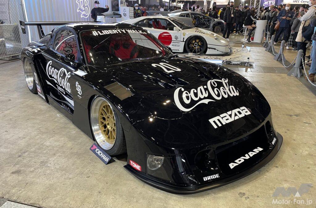 コチラのカスタムカーのベースは「マツダ・RX-7(FD3S)」70年代に一世を風靡するスーパーシルエットと呼ばれるグループ5選手権のポルシェ935をイメージしている。ノーズは長く延長され、フェンダーはフロントが50mm、リヤが70mm拡幅されるなど、迫力のスタイリングを実現している。リヤのディフューザーもなかなか攻撃的なデザインだ。こちらのボディキットは市販化されていて、ボディキットの価格は249万5900円。