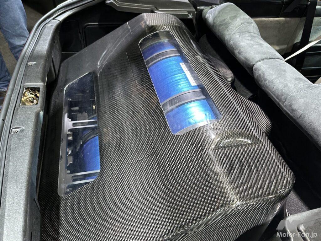 水素燃料は燃料電池車MIRAIが使う70MPaの水素タンクを2本、リヤに搭載している。水素充填口もMIRAIのものを流用している。