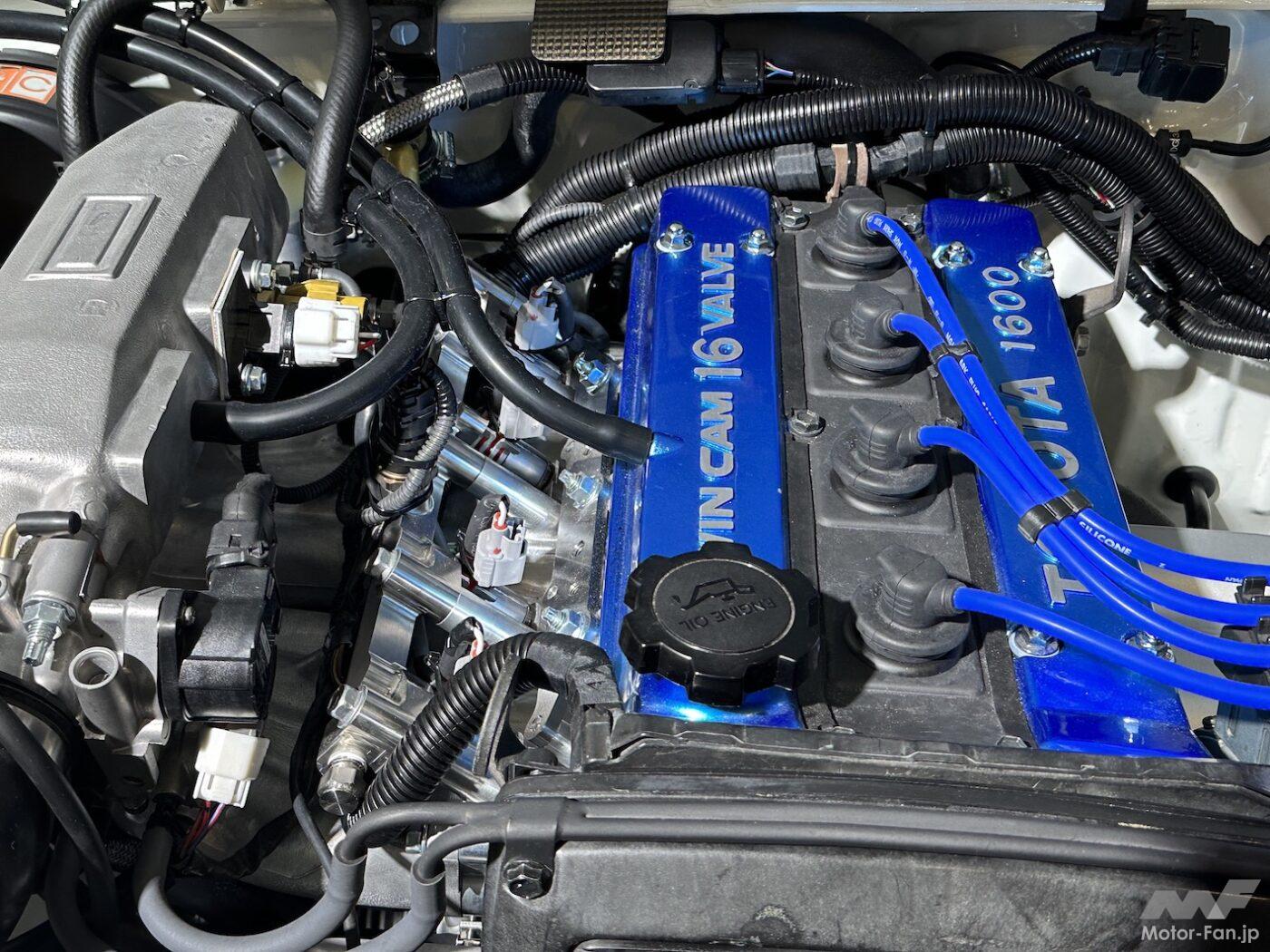 AE86トレノが搭載していた1.6ℓ直4DOHCエンジン、4A-GEU型を下ろして、スーパー耐久に参戦中のGRカローラの水素エンジン(GRヤリスのG16E-GTS型1.6ℓ直3エンジン)を積んでいるなら、さほど大きな驚きは生まれない。ところが、今回のAE86 H2 Conceptは、4A-GEU型をそのまま活かして水素エンジン化しているのだ。