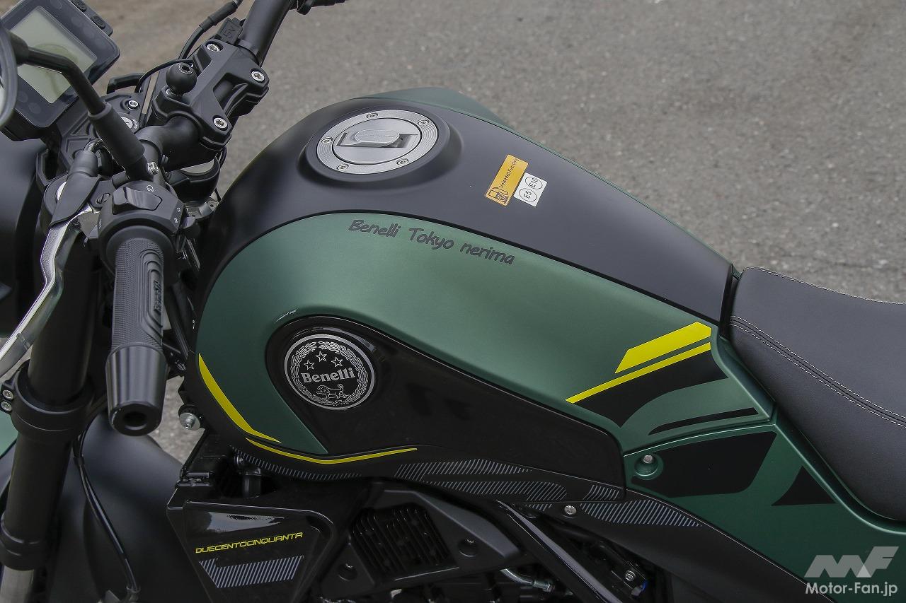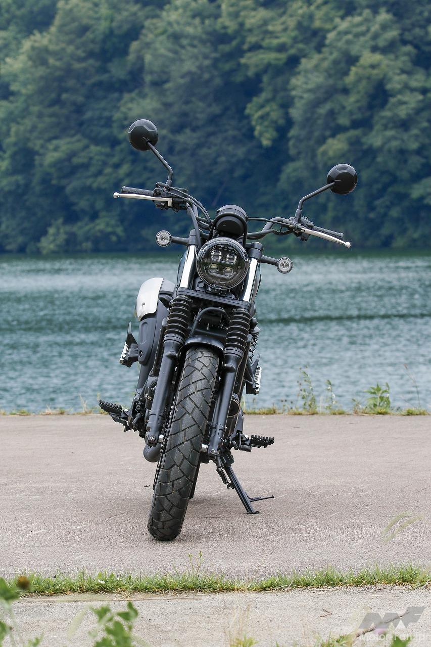 スクランブラーというとワイドなハンドルにブロックタイヤ、それにアップマフラーを装備したバイクを思い浮かべるのですが、レオンチーノ250のスタイリングはどちらかといえばネイキッドモデルとしたほうがしっくりきます。せめてブロックタイヤでも装着していればスクランブラーっぽさが出るのでしょうが、スタンダード状態のボディを見る限り、CL250のほうがスクランブラーらしさを実現していると思います。オフ色を求めるならCL250が適切な選択になるはずです。