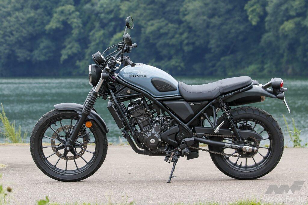CL250はフロント19インチタイヤを履いていることもあって、ポジションはもう少しオフロードバイクに近い感じです。しかしシート高は790㎜で前後サスペンションの沈み込みも大きいことから、足つき性、乗り心地の面ではレオンチーノ250に優っていると思いました。