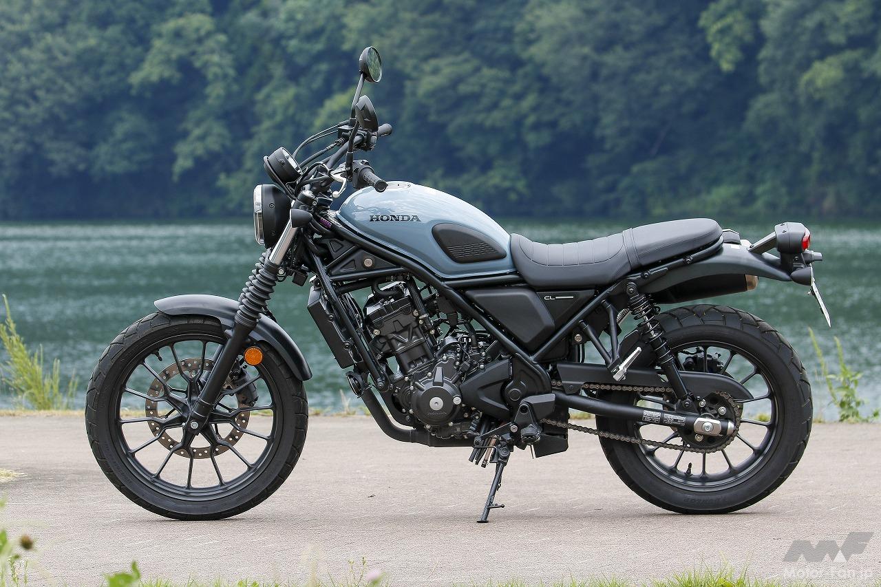 心臓部のエンジンは水冷4ストDOHC4バルブ単気筒。CL250も同じ形式のエンジンを搭載しています。ちなみにスペックは、レオンチーノが最高出力19kw/9,250rpm、最大トルク21.0Nm/8,000rpmで、CLのほうは最高出力18kw/8,500rpm、最大トルク23.0Nm/6,250rpmとなっています。性能面ではほぼ互角といえ、レオンチーノのほうがやや高回転型としています。