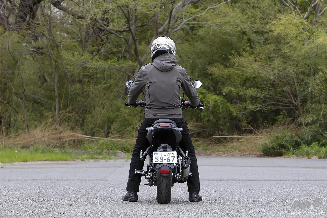 ロードスポーツとするならばハンドリングには切れがあるのかというと、そういう方向性でもありません。全体には安定性志向となっていて、落ち着きのある特性となっています。アップライトなポジション、フラットなエンジン特性と合わせて、このしっとり感のあるハンドリングは実によくマッチしています。サスペンションのプリロードをソフトな方向へアジャストしてやれば、さらにゆったりと走ることができるはずです。快適性をアップさせればよりツーリング向きのバイクになると思います。