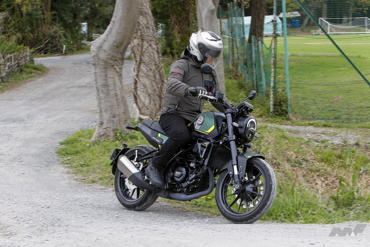 コンフォート性よりスポーティさを狙ったのか、前後サスペンションはややハードな設定だと感じます。そのため乗り心地は硬めです。スクランブラーとして見た場合、サスペンションストロークが大きくてソフトに作動するほうが適切だと思うのですが、レオンチーノはロードスポーツに近いセッティングとしているようです。この点に関してはCLのほうがスクランブラーらしい足回りとしていると思います。