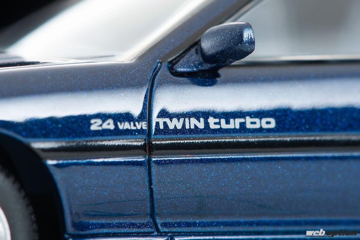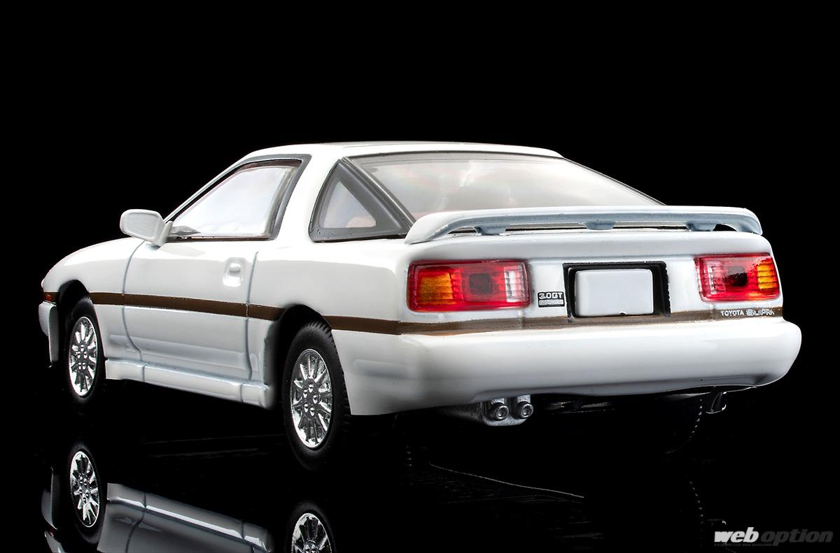 今回モデルとなったのは7M-GEUエンジンを搭載した最上級グレード「3.0GT」と、1G-GTEUエンジンを搭載した2.0L最強モデルの「2.0GT」だ。グレードや年式違いによる細かい差異まで再現されているのはトミーテックならではのポイント。ワイドボディではなくナローボディ仕様というのも、マニア心をくすぐるポイントだ。