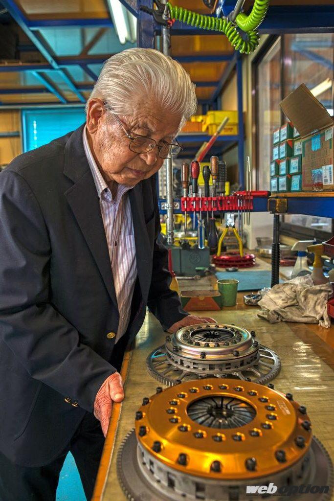 オールバックでまとめられた白髪、眼鏡の奥に伺える鋭い眼差し。やや早口な岡山弁で語るその姿は、とても傘寿を過ぎているとは思えない。少なくとも自分の中では、TC24の取材で初めて訪れた20数年前のイメージと、そう大きく変わらない。岡﨑スピード技術研究所、略してオーエス技研。一代で世界的メーカーを築き上げた創業者、岡﨑正治氏のことである。