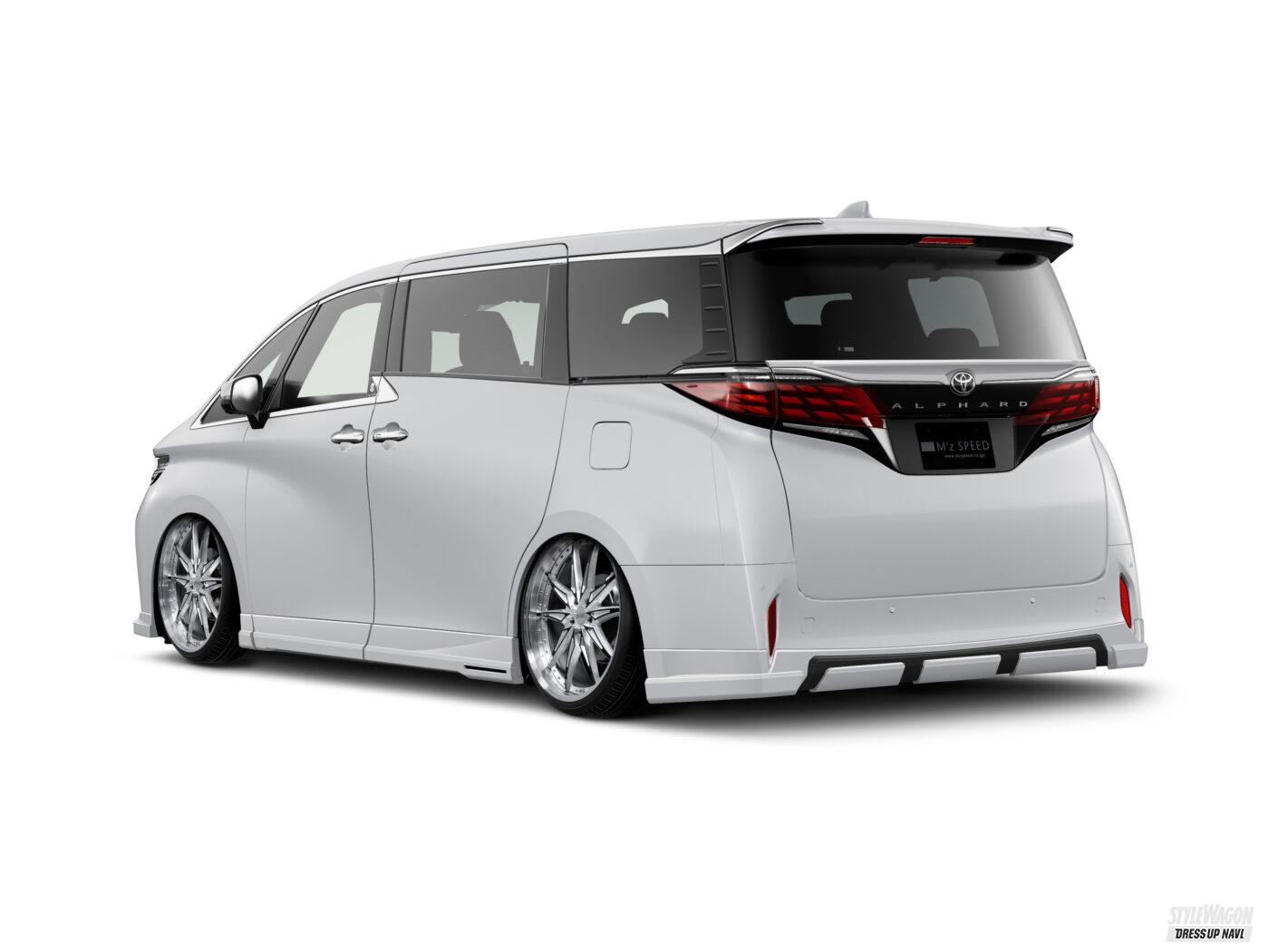 アルファードとヴェルファイア、2台の完成予想CGを公開したエクスクルーシブゼウス。どちらもベースとなるフロント、サイド、リアはハーフタイプを採用。LEDデイライトを搭載した存在感あふれるフロントは、それぞれ専用デザインで、高級感とスポーツテイストを絶妙に融合した造形。フェイスを引き締めるグリルガーニッシュも設定されている。サイドとリアは共通デザインとなるものの、リアハーフは両者ともマフラーの有無を選べる2タイプを用意。すでに先行してアルファードの開発は着々と進んでいる模様。まもなくお披露目される見通しだ。また、母体となるエムズスピードでは、お得な新車コンプリートカーも用意。こちらも見逃せない。