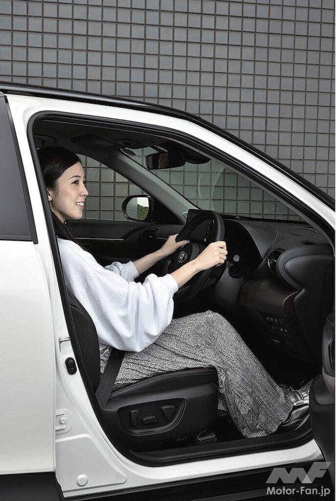 乗員の位置関係はヤリスと同じで、運転姿勢はSUVというよりハッチバック的。後席のニースペースもヤリスと同じで、身長181cmの筆者膝前の余裕は約10mm。一般的な体格の日本人家庭なら、無駄のないジャストな居住性と言える。ヤリスよりドアの開口面積が大きく、着座する位置も高いため、乗り降りのしやすさはヤリスに優る.