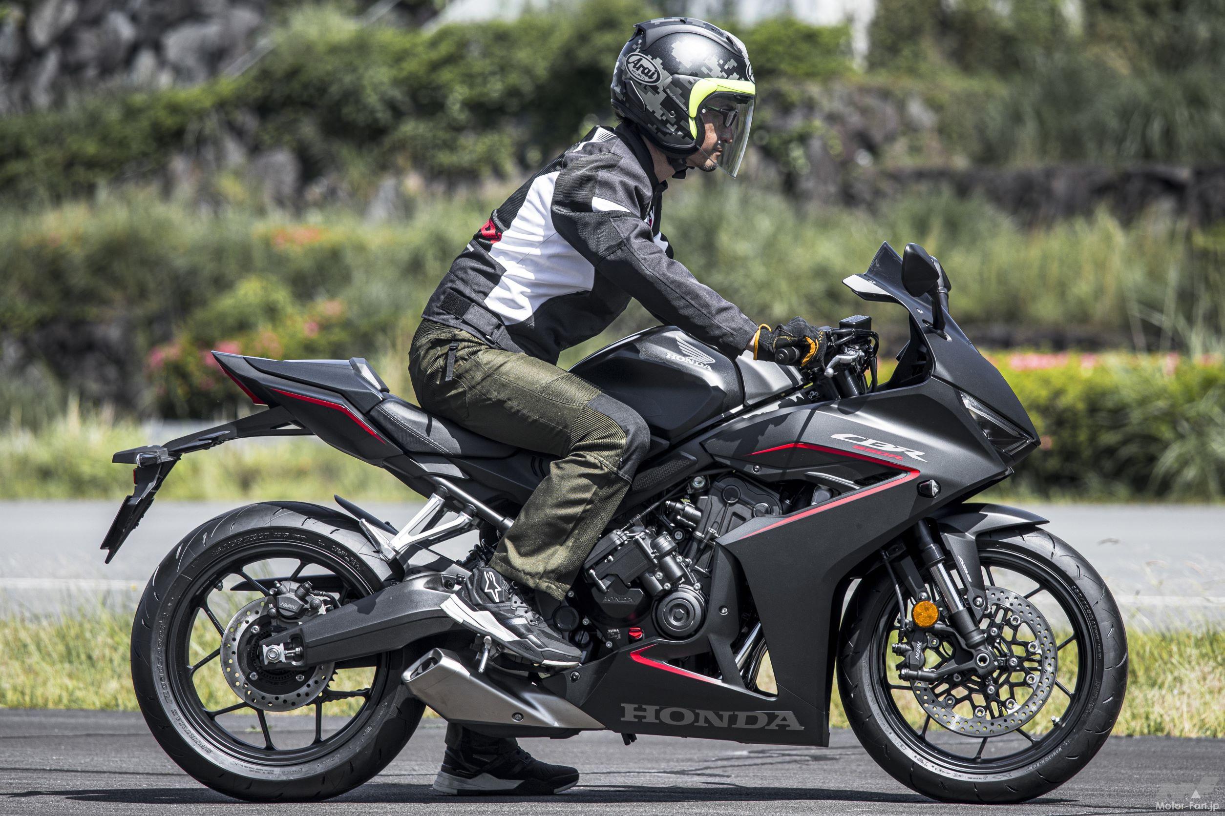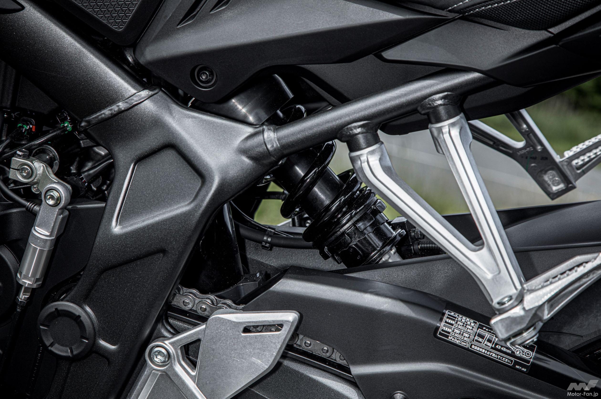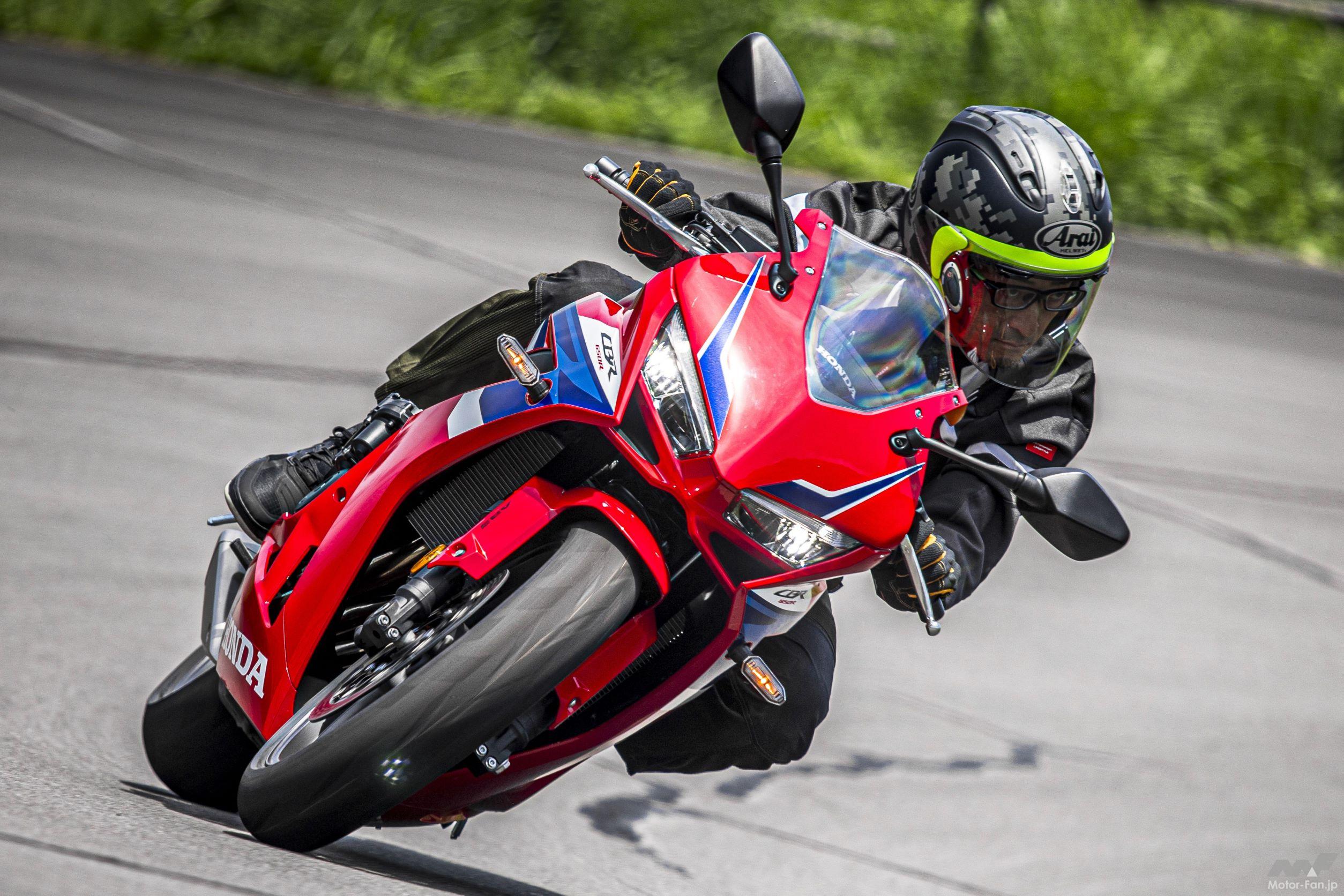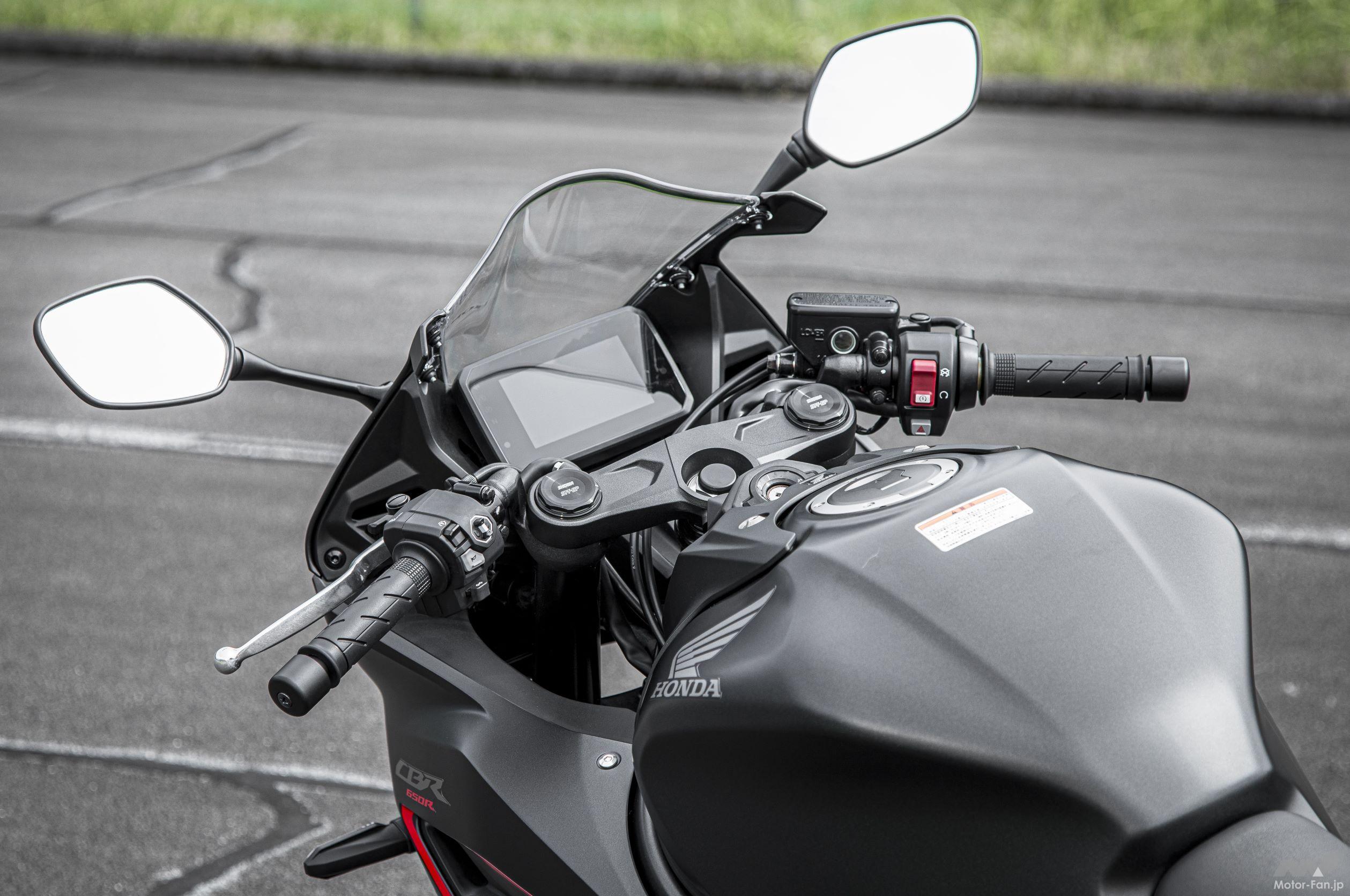 CBR650Rは、カウリングの整流効果もあってかスタビリティ成分が強めで、速度が増すほどにピタッと安定してくる。旋回力がそれなりだと感じるのは、ホイールベースが長いからだろうか。事実、CBR600RRより80mmも長く、これも安定性を高める要因になっているのは間違いない。