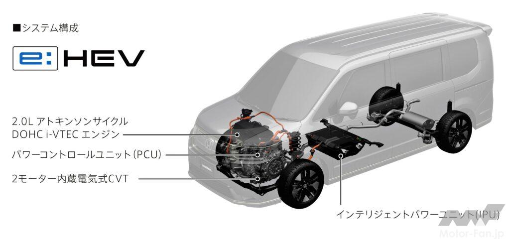 さてパワーユニットですが、6代目ステップワゴンには、モーター走行を中心にさまざまなドライブモードを使い分ける、Honda独自の2モーターハイブリッドシステム『e:HEV(イーエイチイーブイ)』を搭載したハイブリッドモデルと、静粛性の向上と高出力化を実現した、1.5ℓ直噴 VTEC TURBOエンジンを搭載するガソリンモデルの2種類がラインアップされています。