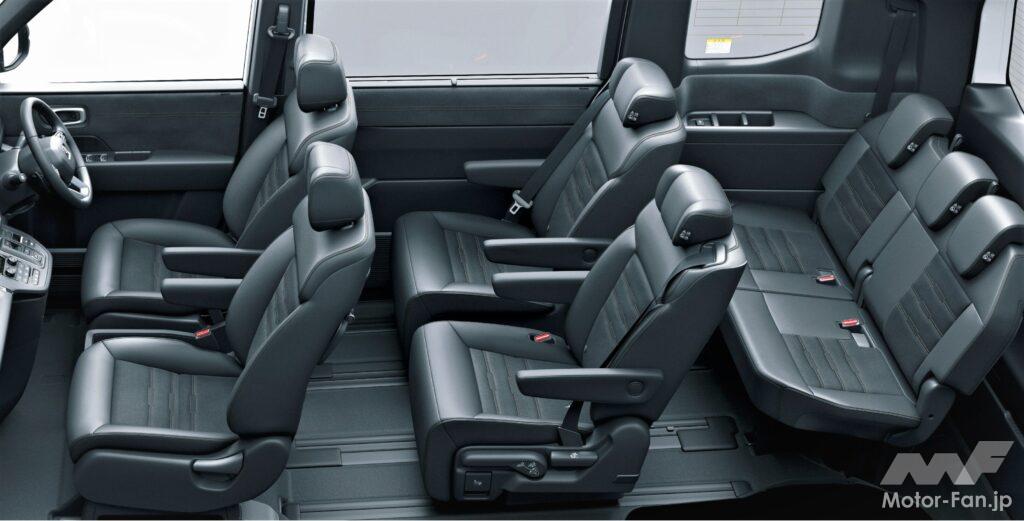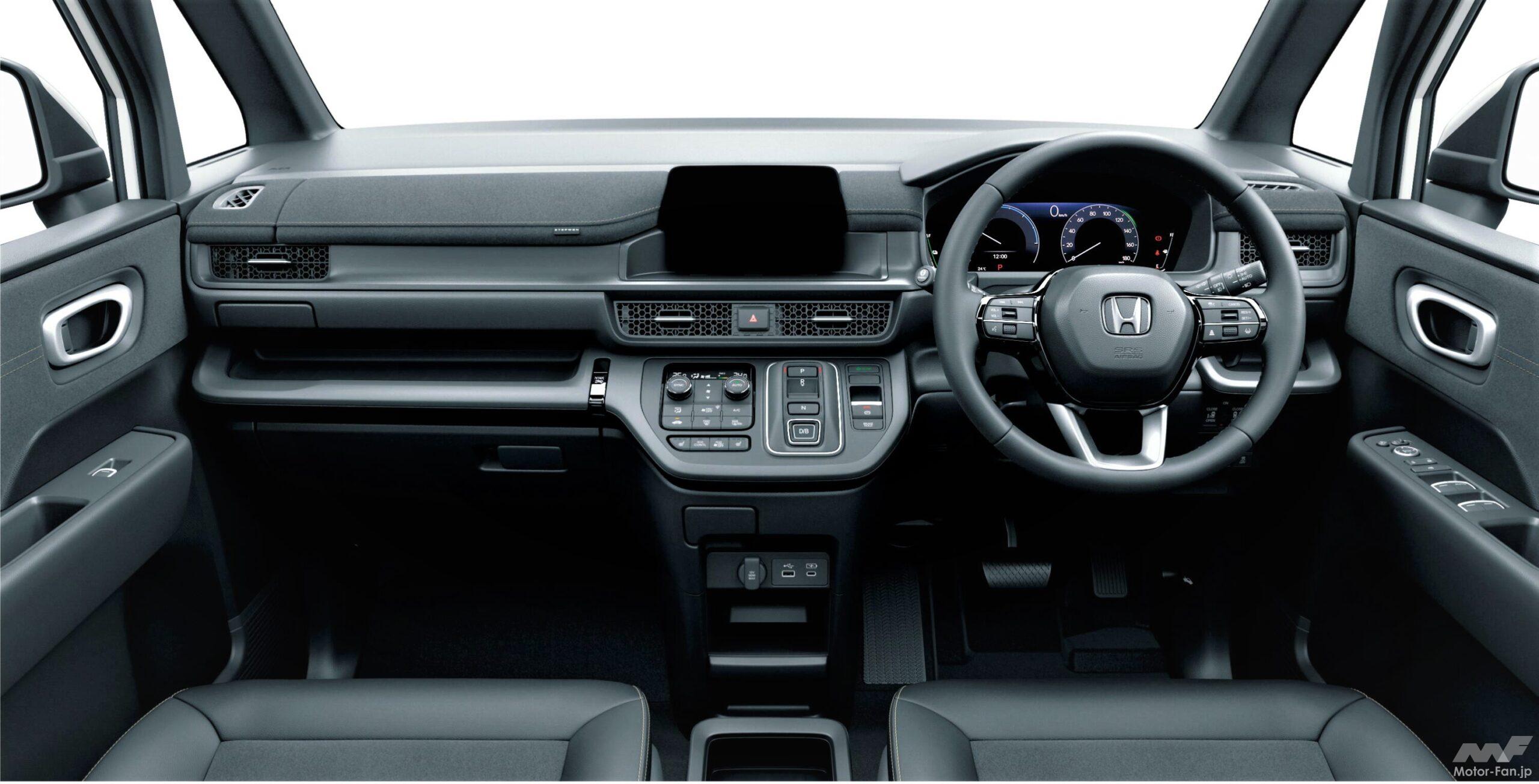 インテリアは、歴代モデルで築いてきた「家族のための大空間」という考え方を進化させ、自分の家にいるような居心地の良さと、新たな使い方が見つかる自由な空間を目指しています。『エアー』は、温かみのあるカラーを用いた明るい室内でリビングのような安心感のある室内空間に、『スパーダ』は、スタイリッシュな印象を与えるダークトーンのカラーで上質な室内空間にそれぞれ仕上げられています。さらに、水平基調なデザインによって乗る人の視野を安定させることで乗り物酔いを起こしにくくする工夫がされています。加えて『スパーダ』をベースとして、外観にはプラチナ調クロームメッキ加飾、インテリアはスエード調表皮&プライムスムースのコンビシートなどを採用して質感をさらに高めるとともに機能を充実させた『STEP WGN SPADA PREMIUM LINE(ステップワゴン スパーダ プレミアムライン)』が設定されています。