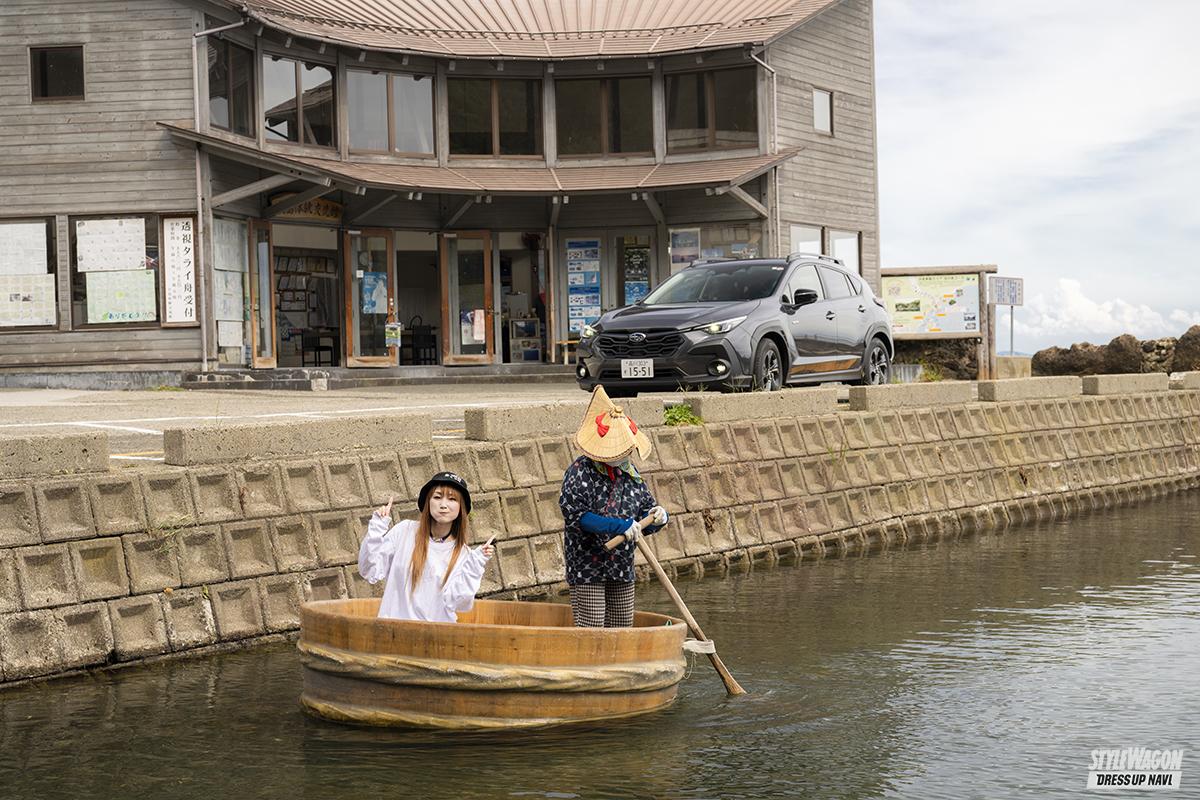 これまで、愛車としてのレヴォーグ、WRX S4、そして今回の試乗会でのレイバックと、いわゆるV系ばかり運転してきた私にとって、クロストレックの乗り味は新鮮でした。どっしりと構えた低重心な乗り味というよりも、ライトで軽快、身のこなしが軽やかといった感じです。ここ佐渡島は、平坦な道もあれば、勾配やカーブ、砂利道など道路状況がさまざまで、クルマの性能をフルに活かせるシーンが多く、クロストレックのポテンシャルの高さを感じることができました。
