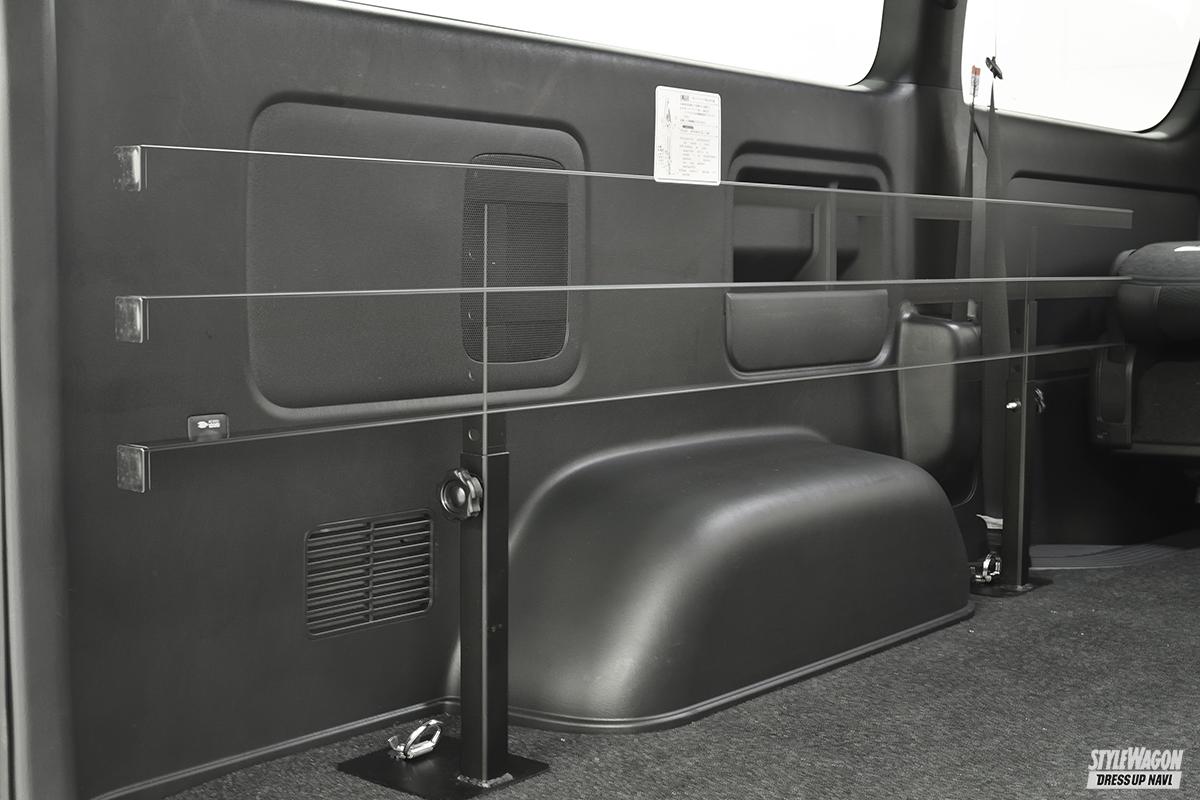 シートベルト部や内装の窪みなど、専用設計だからこそ成せるフィッティングの良さにも注目。これもアベストのベッドキットのポイントだ。
