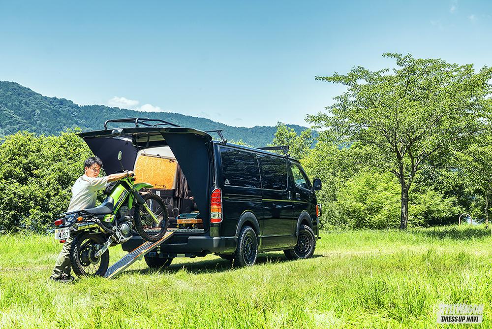 広々とした荷室を持つハイエースは、アウトドアアクティビティに持ってこい! せっかくアウトドアを楽しむなら、ルックスだってアウトドア風味を高めたくなるのは自然の流れ。 というわけで、外遊びギアやオフロード系カスタムを取り入れたデモカーをはじめ、 アウトドアスタイルにぴったりのパーツ、さらには実際に楽しんでいるユーザーたちまで、 最新事情をピックアップしてみたぞ!