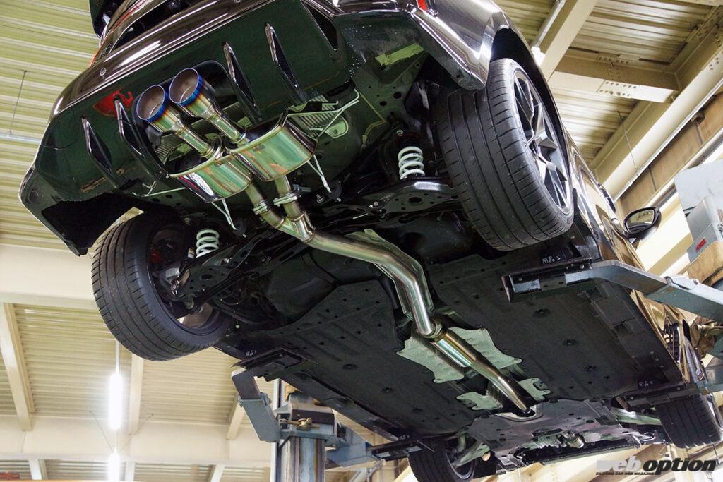 素材はSUS304(テールエンドのみチタン)を採用し、美観と耐久性を両立。メインパイプは75φ、テール外径は119φというレイアウト。近接排気音は純正が84dBなのに対し、リーガマックススポーツは94dB。もちろんJQR認証を取得した車検対応の製品だ。