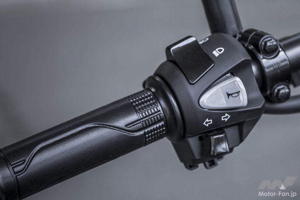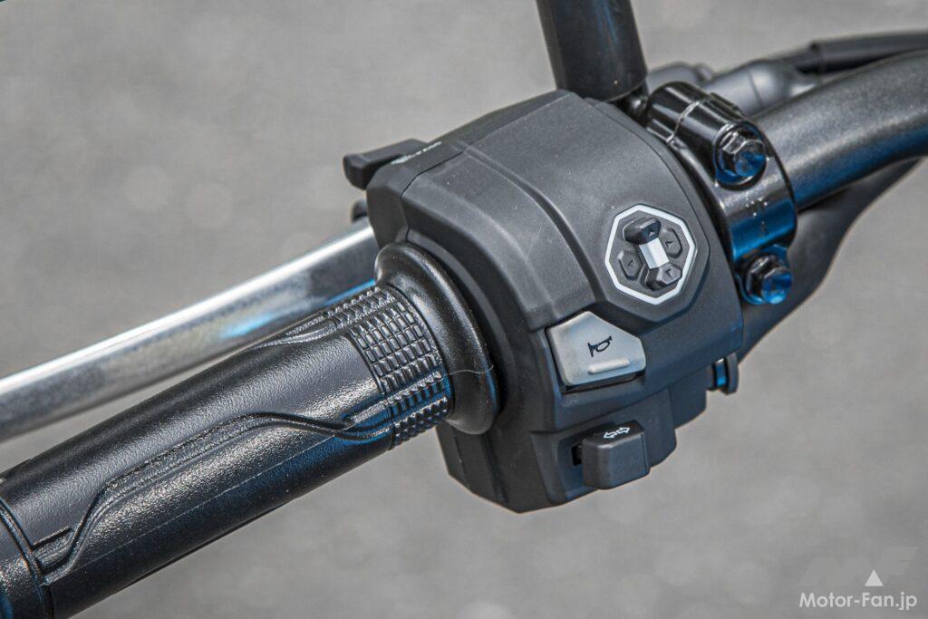 左側スイッチボックスは新作となり、4ウェイセレクトスイッチ(LEDイルミネーション付き)が新たに採用された。グローブを装着したままでも非常に操作しやすい。