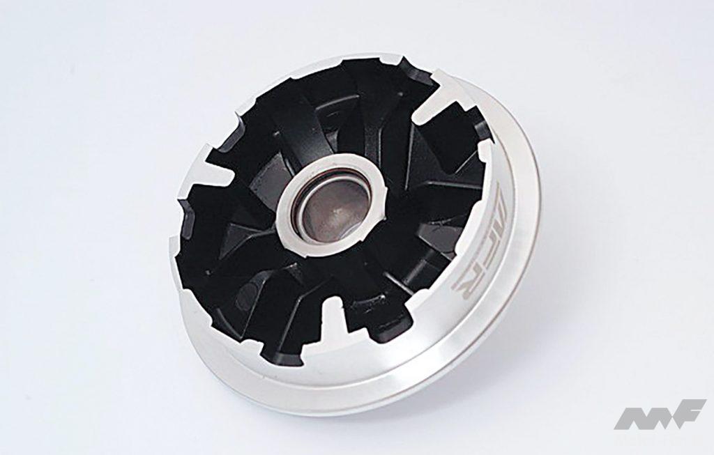 駆動系はパーツを交換するだけでここまで変わる!という例として、MFR製プーリーとクラッチを用意。ノーセッティングで装着した。パワーが上がったその理由や製品に関する詳しい説明は次のページをCHECKせよ!