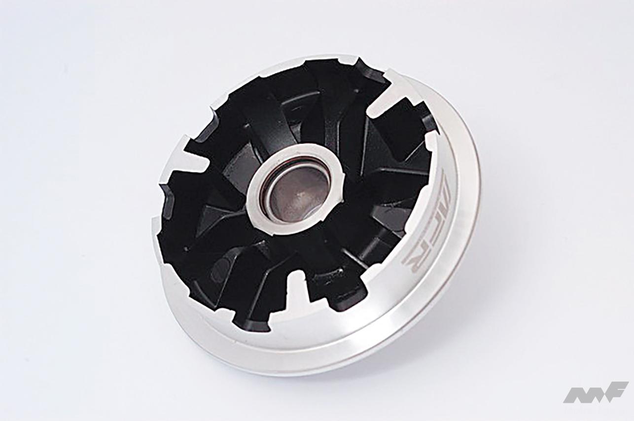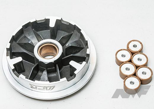 駆動系はパーツを交換するだけでここまで変わる!という例として、MFR製プーリーとクラッチを用意。ノーセッティングで装着した。パワーが上がったその理由や製品に関する詳しい説明は次のページをCHECKせよ!