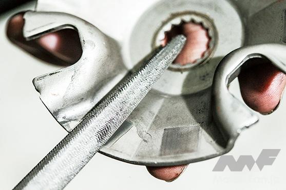 ドライブプーリーを純正パーツから適正な社外製に換えることで、マシンの加速性能と最高速性能の両方を同時に引き上げることが可能になる。なので「まずはプーリーから」がチューニングにおけるセオリーだ。デメリットとしては常用回転数が上がるため、燃費が落ちることと、各パーツの耐久性が下がること。