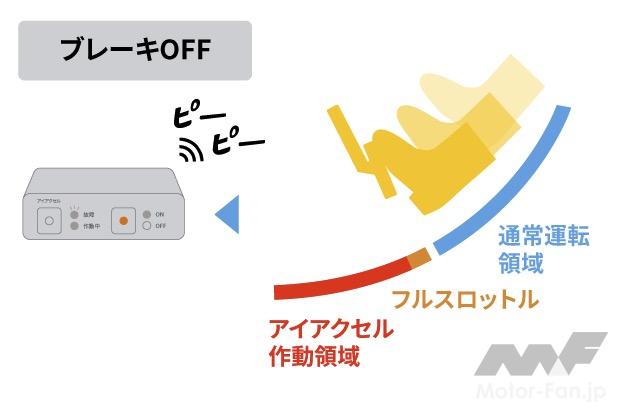 国土交通省認定品の後付安全運転支援装置である「アイアクセル」は、運転手がブレーキペダルとアクセルペダルを踏み間違えた場合、アクセルをキャンセルすると共に自動的にブレーキを緩やかに作動させる。アクセル解除と同時にブレーキも緩やかに作動させることで、他の製品に比べて、安全に車両を減速することができるという特徴をもっている。