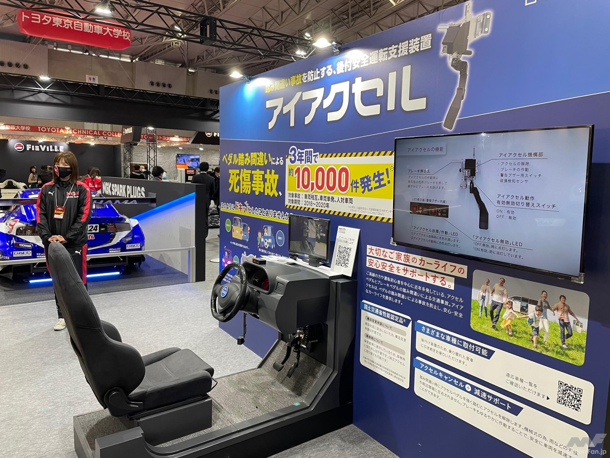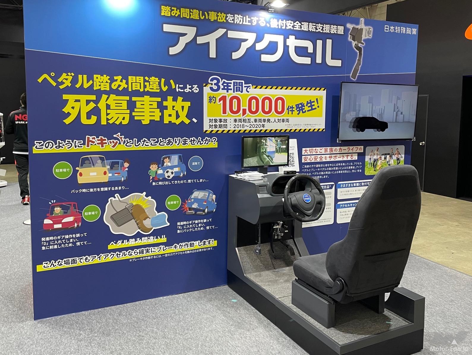 NGKブースでアクセルペダル踏み間違い事故を防止する「アイアクセル」を体験