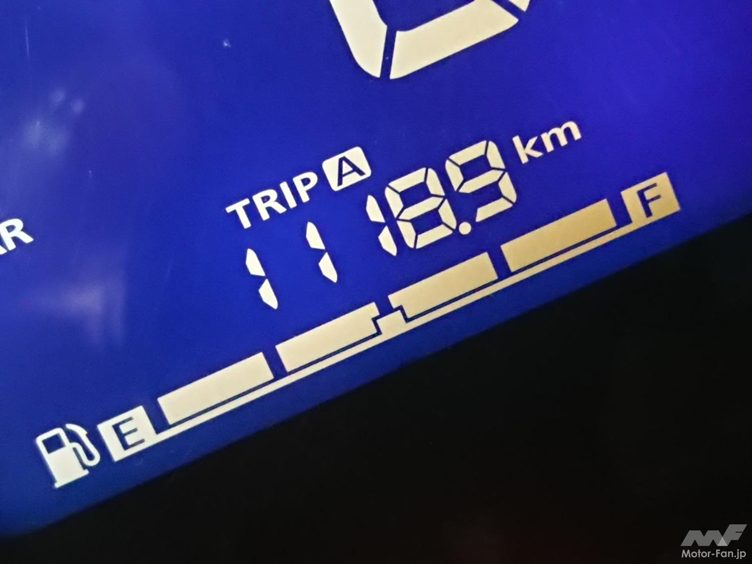 1回目の給油では予想以上の好燃費が記録できたものの、以後は30km/ℓ以上に到達できず……。とはいえ、近年のミドルツインの燃費は20km/ℓ台中盤が定番だから(過去にガチ1000kmで取り上げた車両の実測燃費は、カワサキZ650RS:23km/ℓ、スズキGSX-8R:24.5km/ℓ)、トータルで28.6km/ℓは十分に立派な数字。なお今回の試乗では早めの給油をしてしまったが(残量が2.2ℓになった時点で始まる警告灯の点滅は1度も見ていない)、燃料タンク容量は12ℓなので、航続可能距離は28.6×12=343.2km。