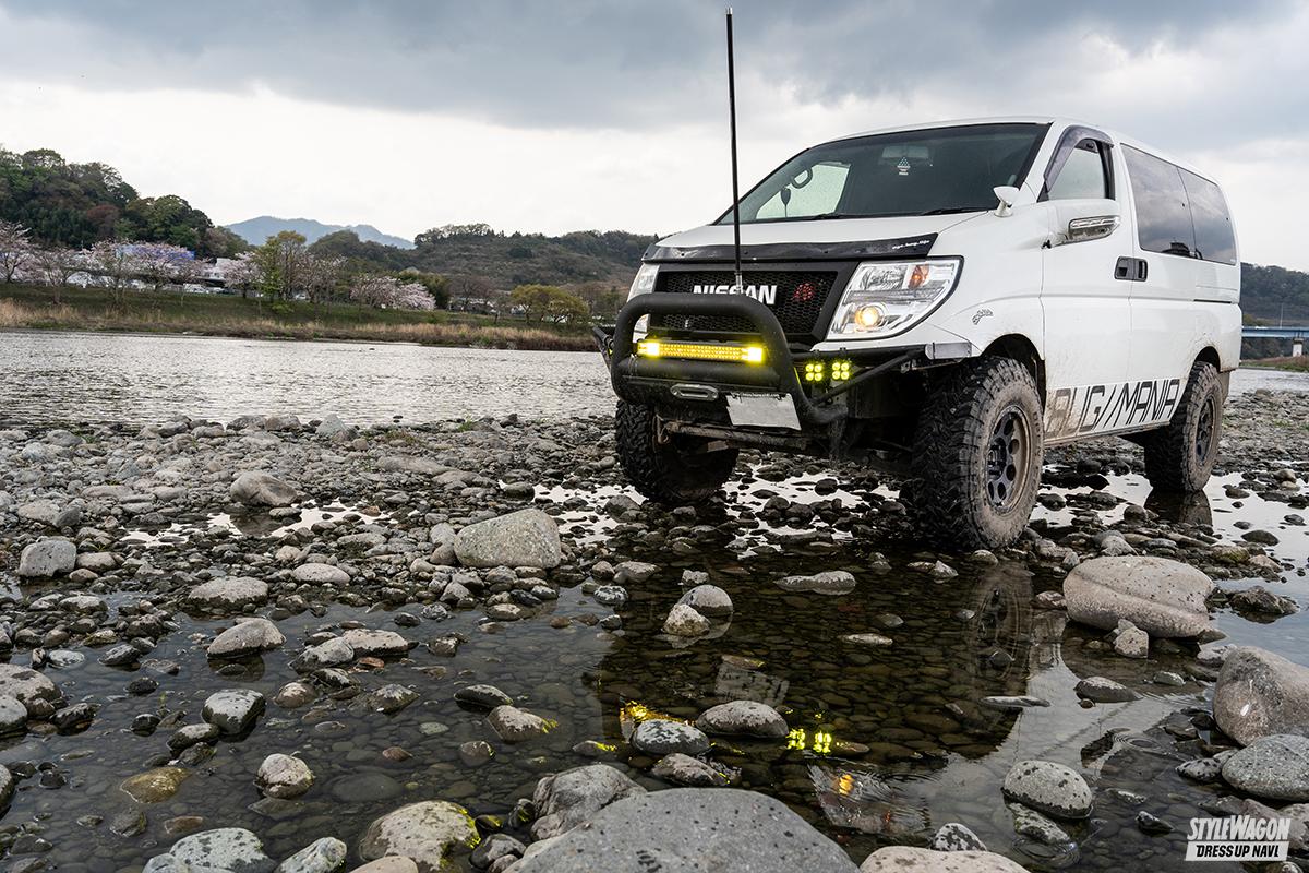 昨今のアウトドアブームと連動するようにドレスアップ界にもアゲ系のトレンドが押し寄せるなか、その先駆け的な存在であり、よりオフロード指向を強めているのがMASA氏のエルグランドだ。