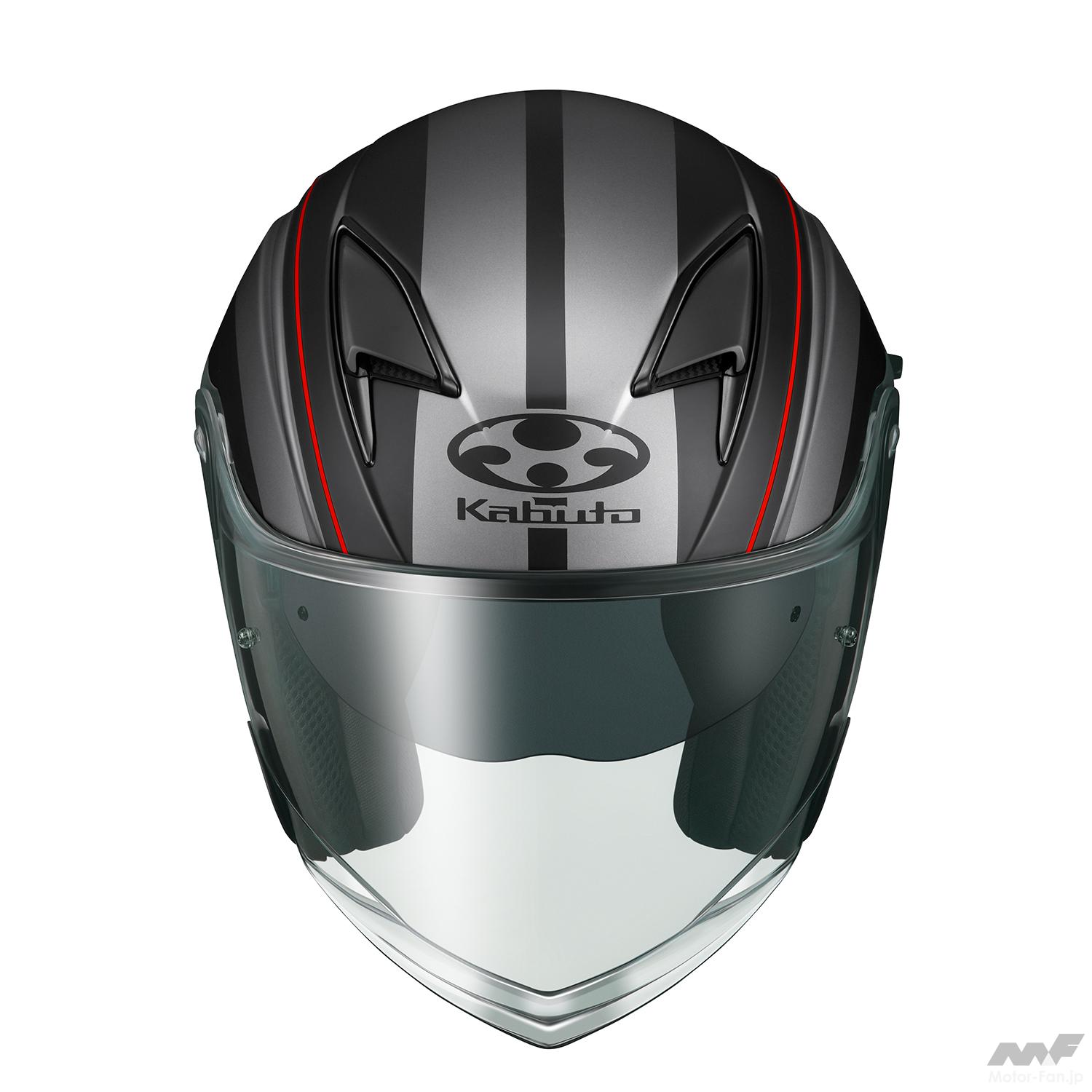 FEM(有限要素法)解析を活用し、無駄な贅肉部分を削減、安全性を確保しながらも軽量化した帽体には、帽体付近の気流をコントロールし、負荷を軽減するオージーケーカブトの特許システムウェイクスタビライザー(PAT.No.4311691)を装備。チークパッド内側にも衝撃吸収ライナーを配置し、ワンクラス上の安全性を実現している。