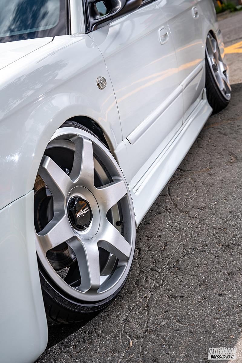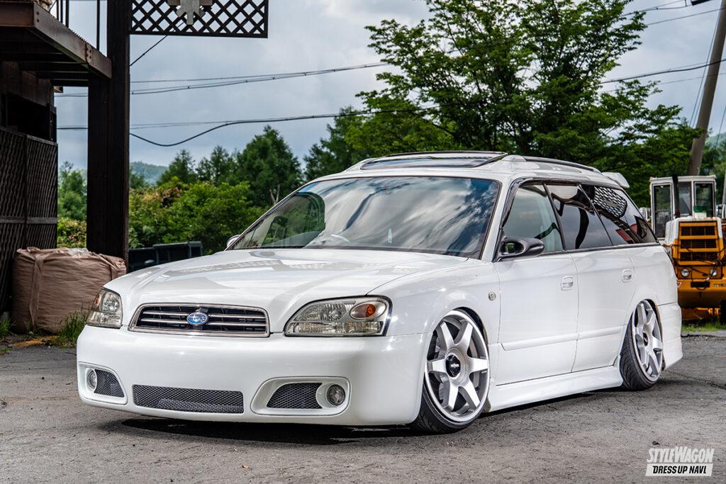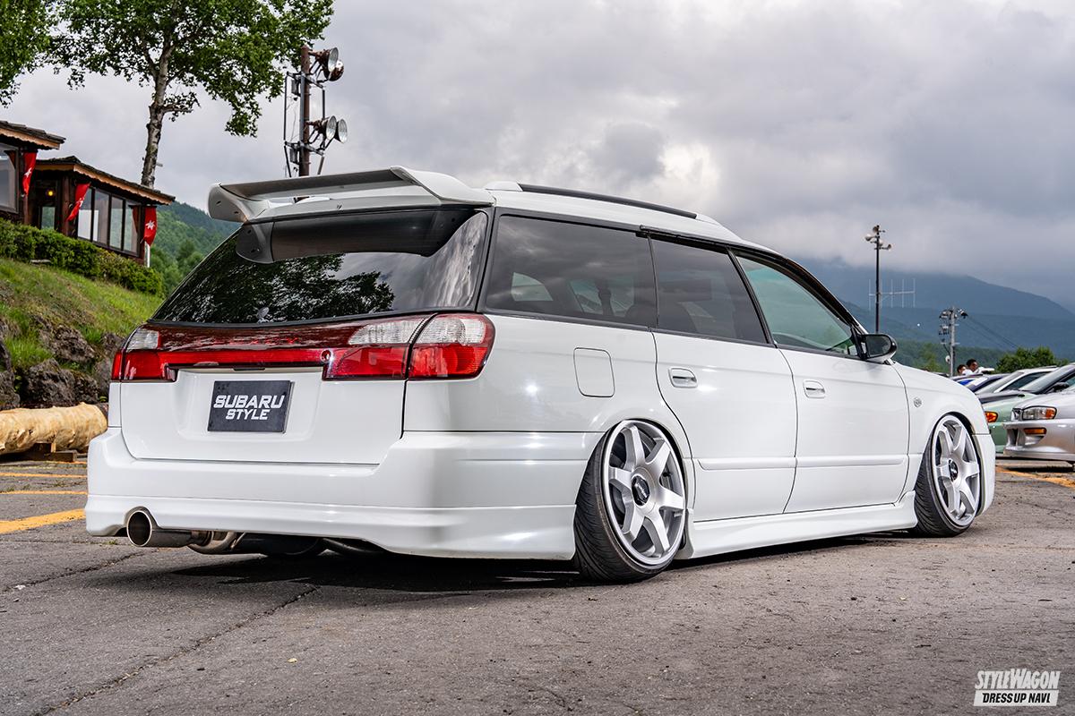 初めてのクルマがBGレガシィ。そこからレガシィが好きになったというJUNさん。現愛車は、ブリッツェンのフロントバンパーを備えるBH5。角の少ないバンパーデザインに合わせ、丸味のあるクリーンな雪見だいふくのような仕上がりを目指しているという。確かに見映えはコンセプト通り。足まわりはティーディメンドと326パワーを組み合わせ、ロティフォームホイールをセット。絶妙なリム被りスタイルがお洒落だ。