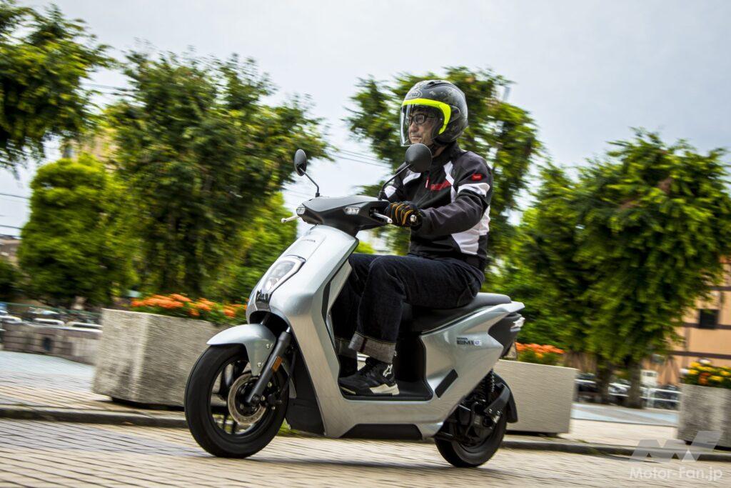 ハンドリングは、リヤ10インチホイールによる低重心が効いているのか、発進~微速域でフラつきにくく、極めてニュートラルで扱いやすい。加えて、遠心クラッチのような加速時のタイムラグが発生しないので、ビギナーほど内燃機関より乗りやすいと感じるだろう。サスペンションの動きは車両価格なりで、荒れた路面や大きなGが加わった際にはやや心許ないが、これも動力性能と同様に日常の足として使うなら特に問題はないはずだ。