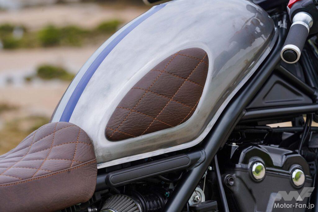 その名前の如く、ジャパニーズ・タトゥである刺青をイメージ。タンクには上り龍や鯉をモチーフにしたカラフルなイラストがペイントされている。シートはタンカラーのレザーに張り替えられ、リヤフェンダーを取り払ってショートなスタイルに。エンジンのヘッドにもタトゥーのようなラインが。