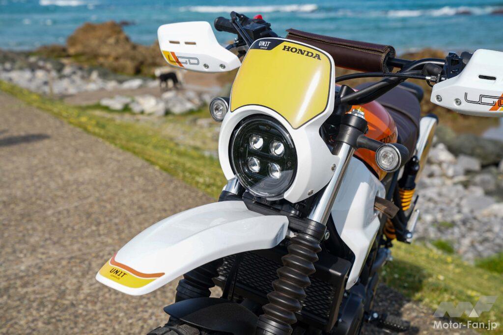フラットロードからラフロードまで、どこまでも長距離を走り続けることができるオールラウンダー。リヤのサイドキャリアにはバッグとスケートボードが積載可能。ハンドルはパッドのついたアップタイプで、マフラーはアップショート。独自のスタイルを生み出している。