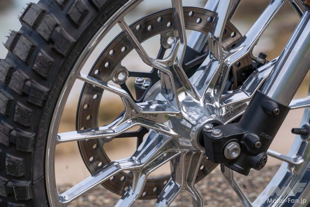 今回初参加となるベルギーは、アメリカのフラットトラックレースをオマージュしたスタイルを構築。機能美を表現し、サイドカバーやフロント&リヤフェンダーなどのパーツは取り去り、シートもシンプルで薄いダブルシートに変更。スイングアームはカンチレバー式に変更している。