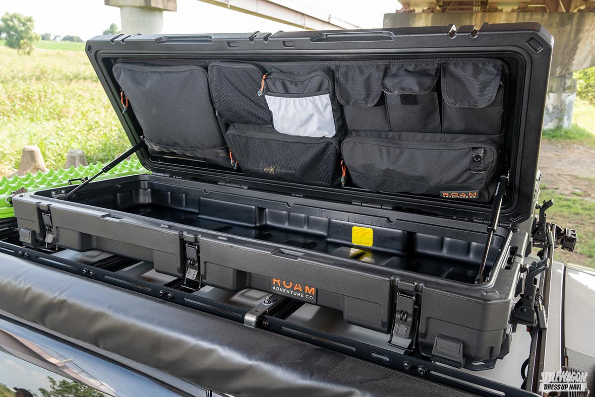 EXTERIOR:フロントバンパーガード=LPアドベンチャー、ロックスライダー=自作、フェンダー=ウィルダネス(北米)純正、ルーフラック=プリンス、サイドオーニング&ボックス=ROAM、リアラダー=NashFabCo、リカバリーボード=MAXTRAXX、各部フォージドカーボンラッピング