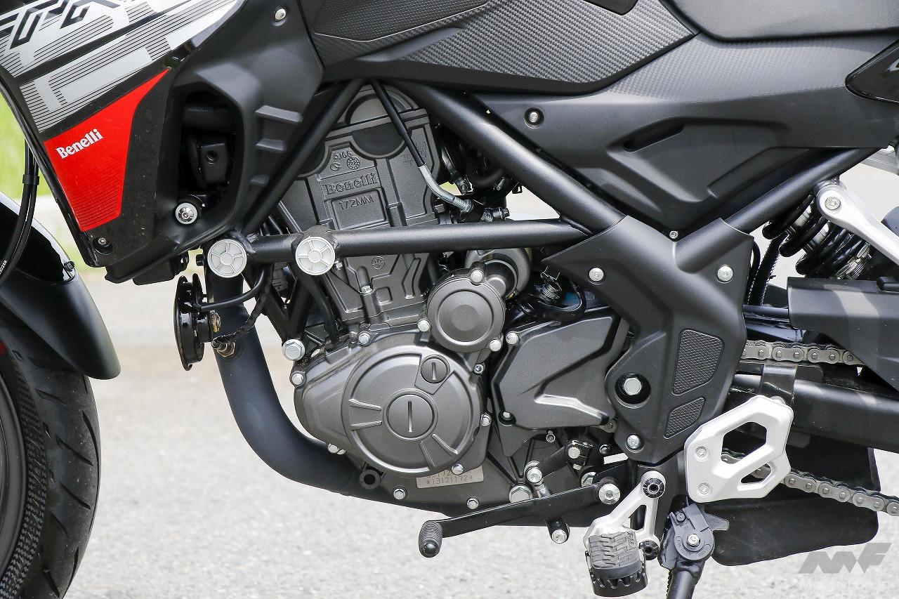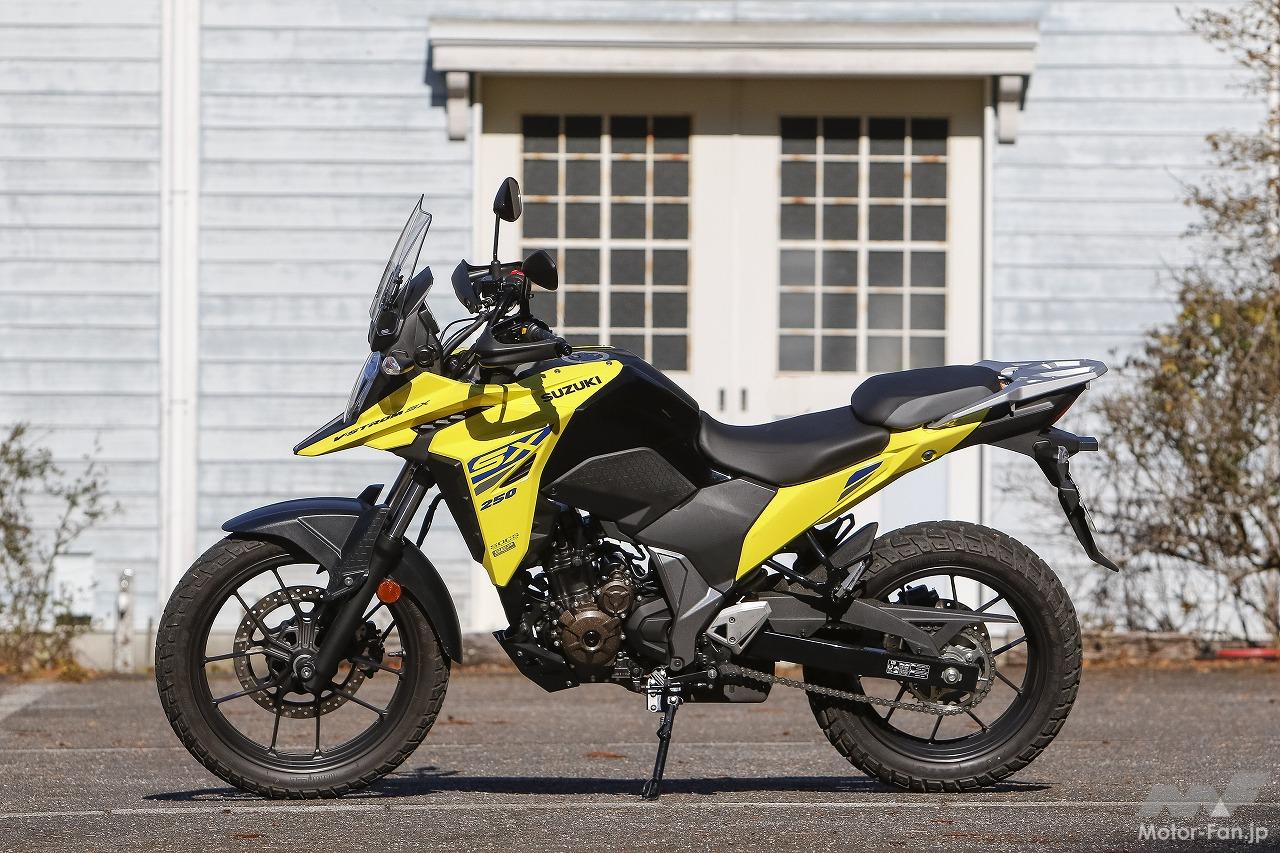 スクランブラーであるレオンチーノ250と共通のフレームに搭載されたエンジンは、249㏄の水冷DOHC4バルブ単気筒。最高出力19kW/9,250rpm、最大トルク21.1Nm/8,000rpmというスペックです。ライバルとなるVストローム250がそれぞれ18kW / 8,000rpm、22Nm / 6,500rpm、そしてVストローム250SXが19kW / 9,300rpm、22Nm/ 7,300rpmというスペックなので、比較するとやや高回転型のエンジンとなっています。