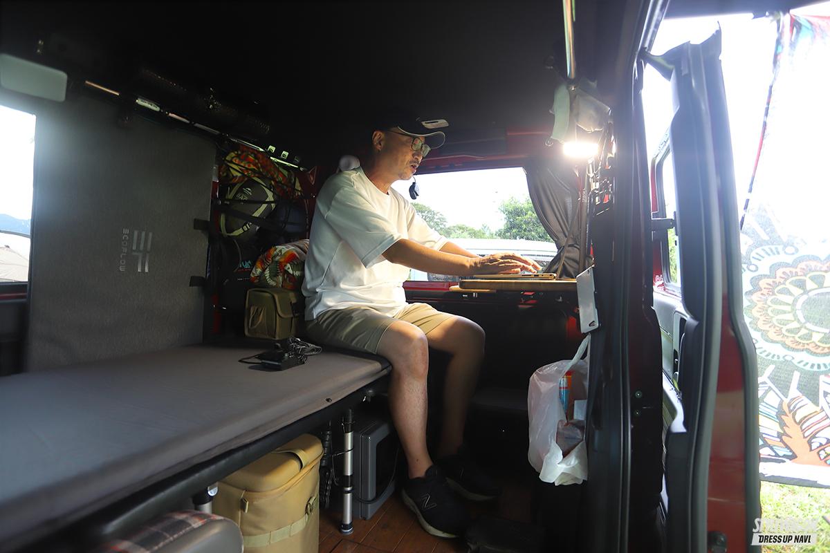 「VW T3が好きだけど、年式を考えるとキャンプや遠出などの普段使いは難しい。T6だとコストがかかりすぎる。そんな時にデナリを見つけて。“なんだこれ!”と一目惚れです(笑)」。オールペンやエアロ、ホイールと普通のN-VANよりはコストがかかっているが、「それでも普通のとは違う。定年を機に購入するので少しは良いかな」。