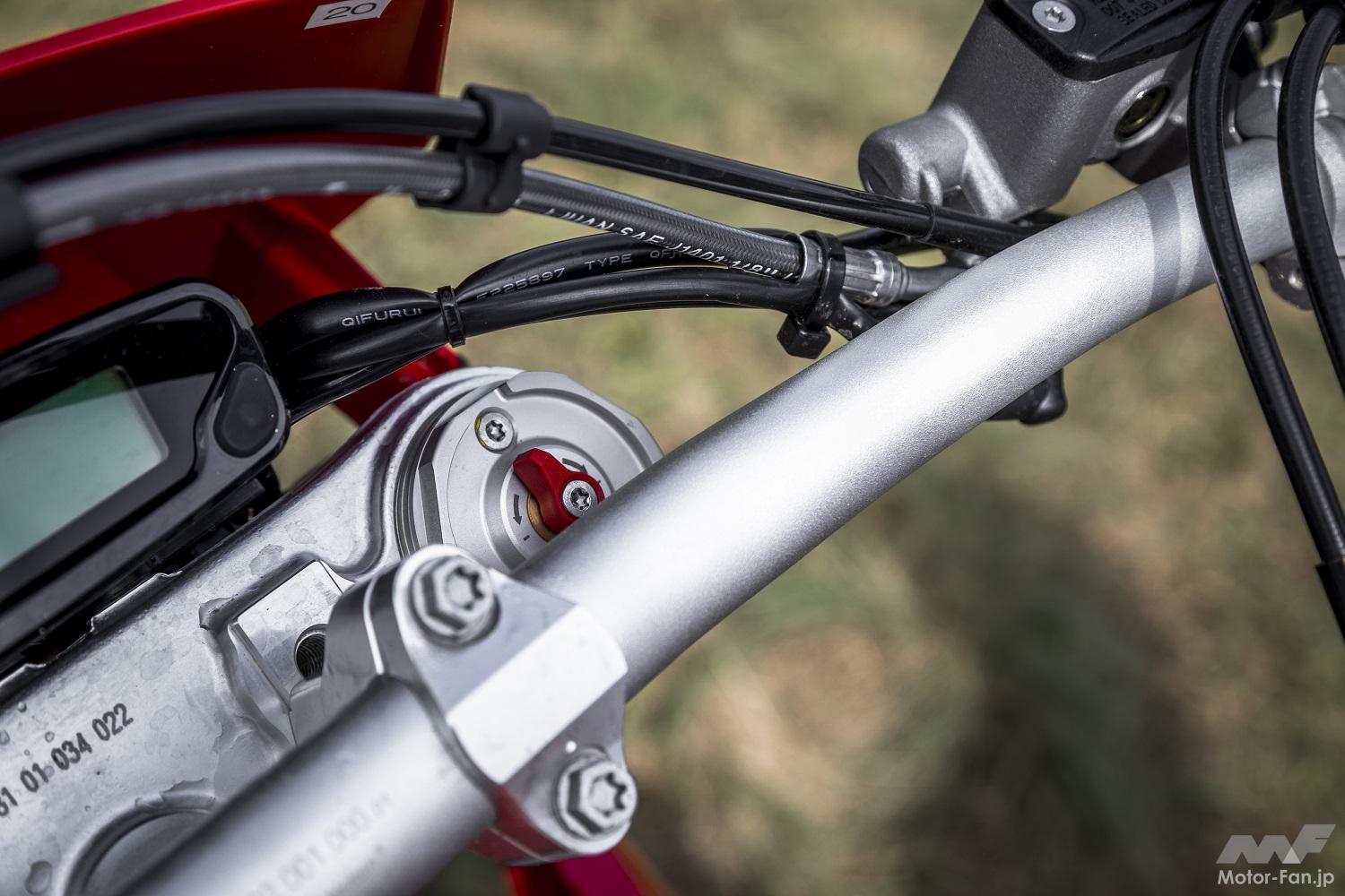 ちなみにクラッチ操作にシビアなトライアル車は、早くから油圧クラッチを採用している。それがオフ車にも広がって来たということ。コストとの兼ね合いはあるものの、操作性重視となったのだ。