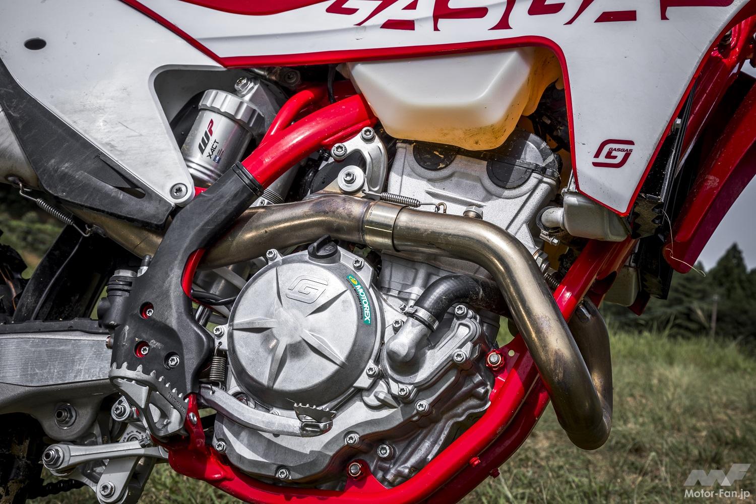 エンジンは4サイクル単気筒ツインカム4バルブの水冷で、京浜製のインジェクション(42mm)を採用。セルスターターオンリーの6速ミッションとなっている。クラッチは油圧式。