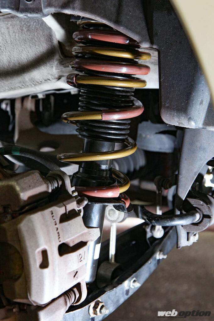 熊倉さんが言う。「そうなると、果たして車高調を入れる必要があるのか?って思っちゃうよね。街乗りに関しては純正ダンパーの方が何かと使い勝手は良いわけだし。それに車高調を組んでても車高をイジらないもんだから、ロワシートが固着してるケースがどれほど多いことか。こうなると車高調の意味がないじゃん…てね。だったら、純正ダンパーで攻めてみるのもアリでしょ」とのこと。