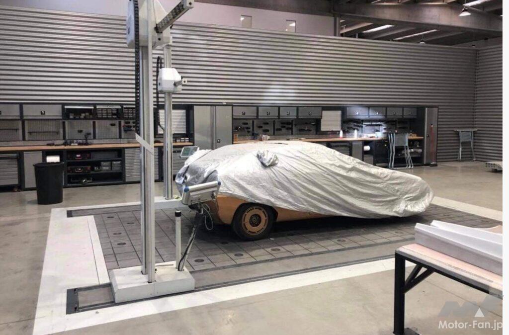 デジタルスキャニングでオリジナルのボディカラーを特定した上で、塗装をすべて剥いで板金の状態にしてから液状ポリパテをスプレーし、微妙な面の凹凸をポリパテで修正。そこにサフェーサーをスプレーし、サンディングしてから塗装。リトラクタブルヘッドランプは広島で作動確認していたが、その筐体はボディと同様に処理して再塗装した。